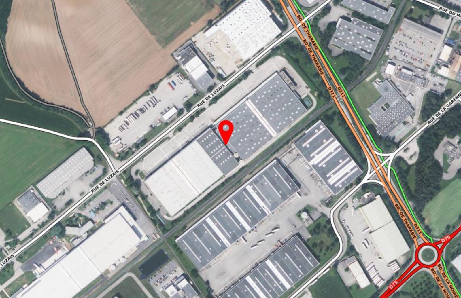 Dans la zone logistique de l'Isle d'Abeau, au Sud-Est de Lyon, sur un terrain clos de 5 ha, un entrepôt Classe A/B de