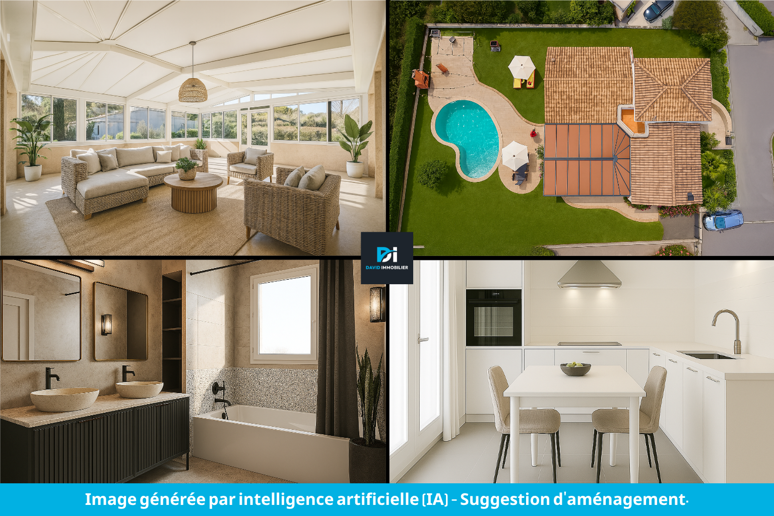 Tourbes, votre agence DAVID IMMOBILIER vous propose une villa T5 217 m2 habitables environ sur 1015 m2 de terrain arboré et clos située dans une impasse au calme, à proximité des commerces et quelques minutes seulement de Pézenas.