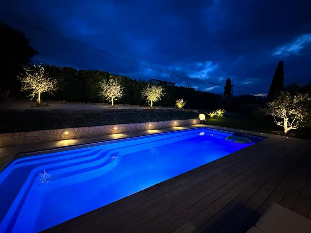A l 'étage un immense séjour ( chauffage et rafraîchissement au sol ) avec une cuisine ouverte complètement équipée ,donnant sur le coté sud où vous attendent une grande terrasse et une piscine de 5x10m.