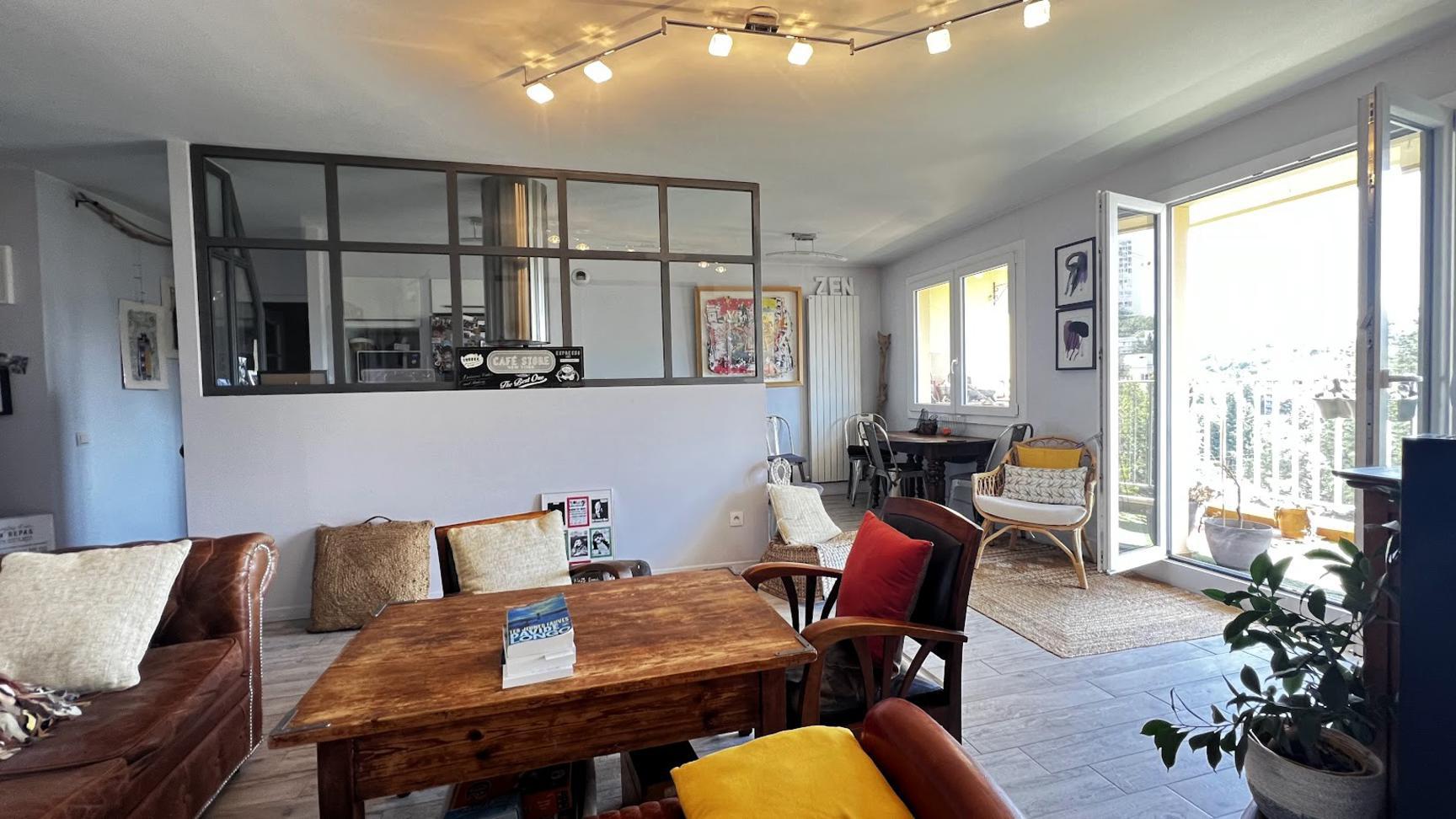 Belle pièce de vie incluant séjour / cuisine et accès direct au balcon avec vue dégagée, un salon attenant de 13 m². Le coin nuit est organisé avec trois chambres, deux salles d'eau et Wc indépendants. Une cave et une place de parking individuelle. Au calme et très lumineux, à proximité immédiate des commerces et des transports en commun.