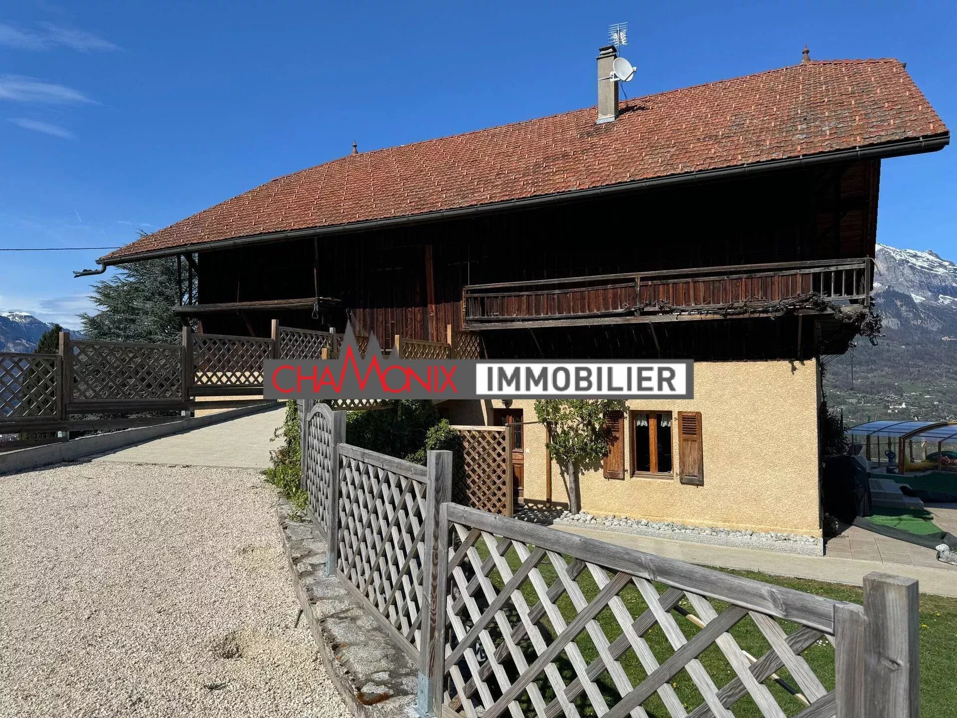 A 30 mn de CHAMONIX et 10 mn de MEGEVE, CHAMONIX IMMOBILIER vous propose ce bien d’exception tant par son potentiel que par son implantation et la superbe vue panoramique que ce lieu offre généreusement. Au faîte d’une colline cette ancienne ferme authentique restaurée est posée dans un terrain de plus de 2000m² sans vis-à-vis. C’est évidemment un grand format avec une grange de plus de 200m² et une partie habitable de 150m² plus sous-sol en partie. Adapté pour accueillir sa famille ou ses amis avec cinq chambres et deux salles d’eau, cette ferme permet à tous de se détendre au calme grâce à sa grande piscine chauffée et son jacuzzi. Pour une activité annexe il y a également un mazot de 17m². L’énorme volume de l’ancienne grange offre une multitude de possibilités et notamment de parkings couverts puisqu’elle est reliée par sa rampe d’origine. Nous vous guiderons avec plaisir pour une visite sur RDV au 06.64.18.18.48.