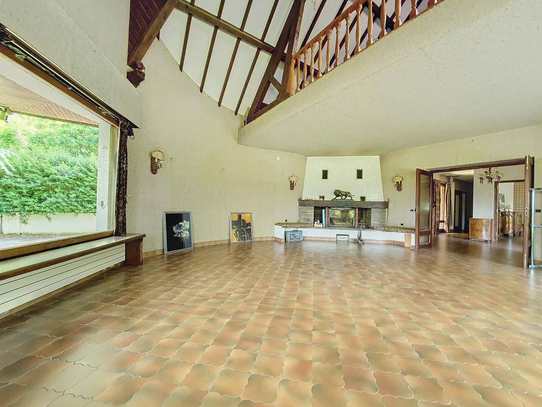 - Séjour avec plafond cathédrale dans la rotonde avec grandes ouvertures sur le parc : 50m²