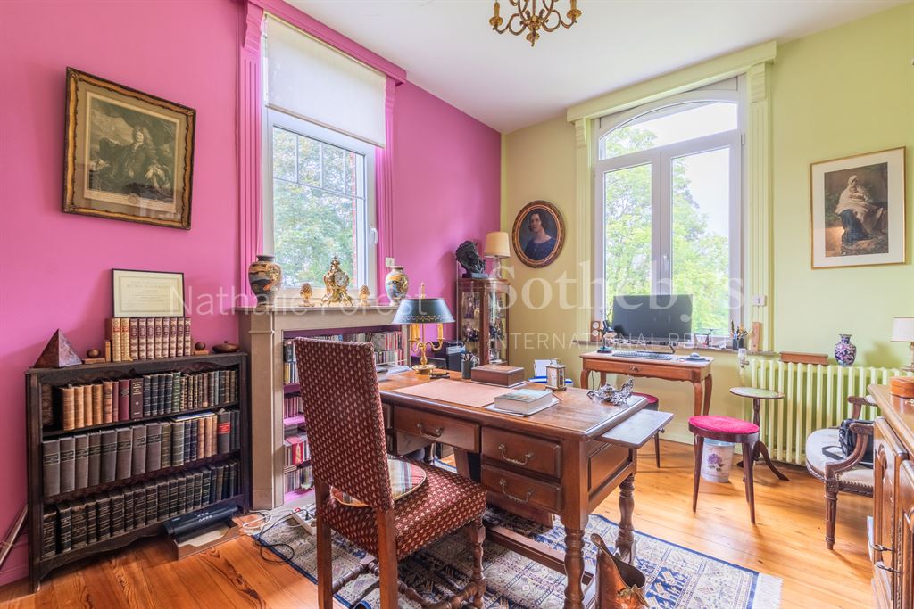 Sailly sur la Lys, rare Maison de Maître de 300 m2 érigée sur une belle parcelle de 3500 m2 exposée plein sud. Cette maison d'exception, début XXème a conservé tout son cachet originel. Elle est composée au Rez-de-chaussée d'un splendide hall d'entrée avec mosaïque d'époque au sol. Un petit salon pouvant faire office de chambre, Cuisine spacieuse et récente toute équipée et sa salle à manger avec vue sur le parc et donnant sur un magnifique double séjour avec deux cheminées en marbres, parquet chevron au sol.