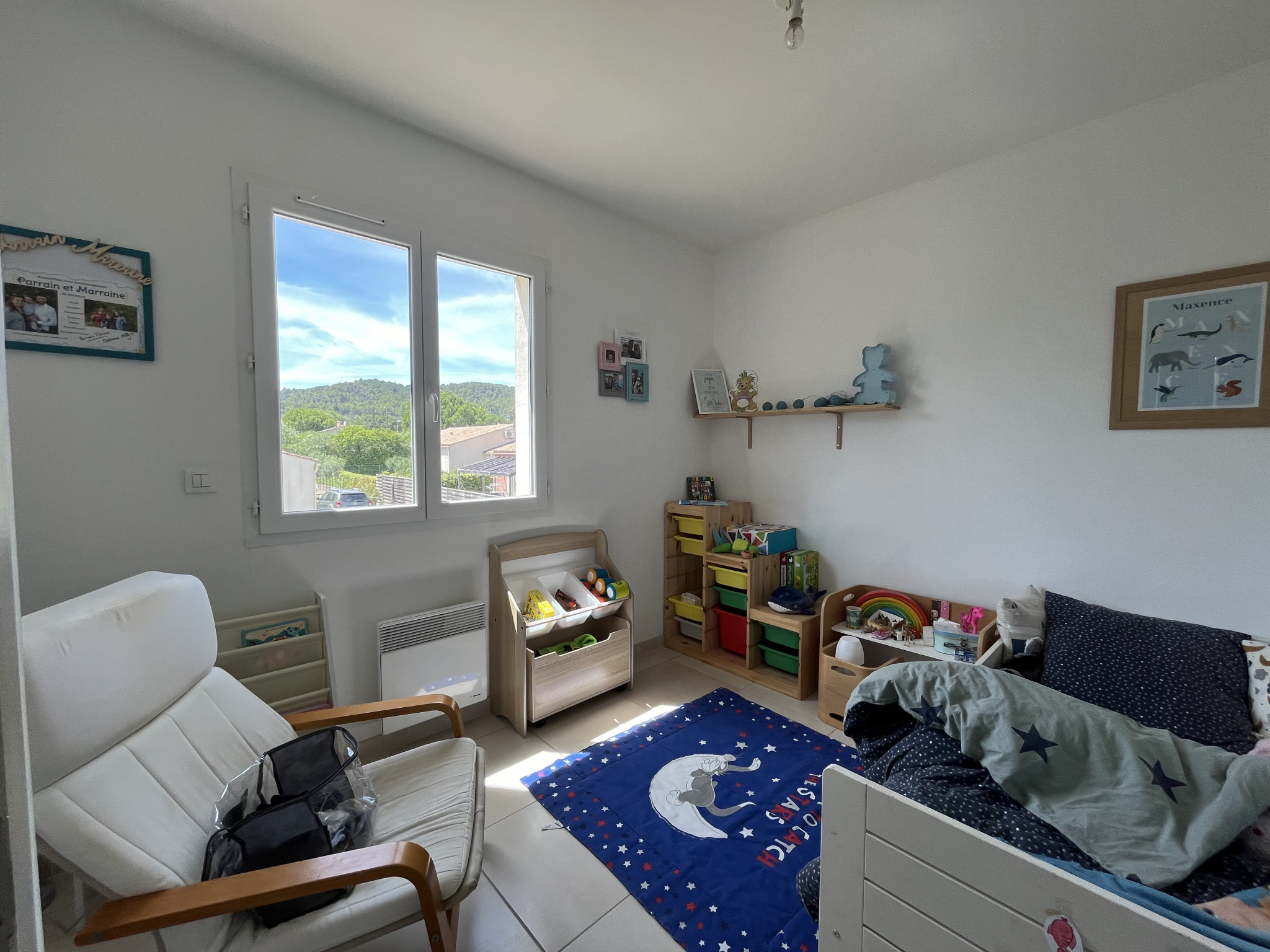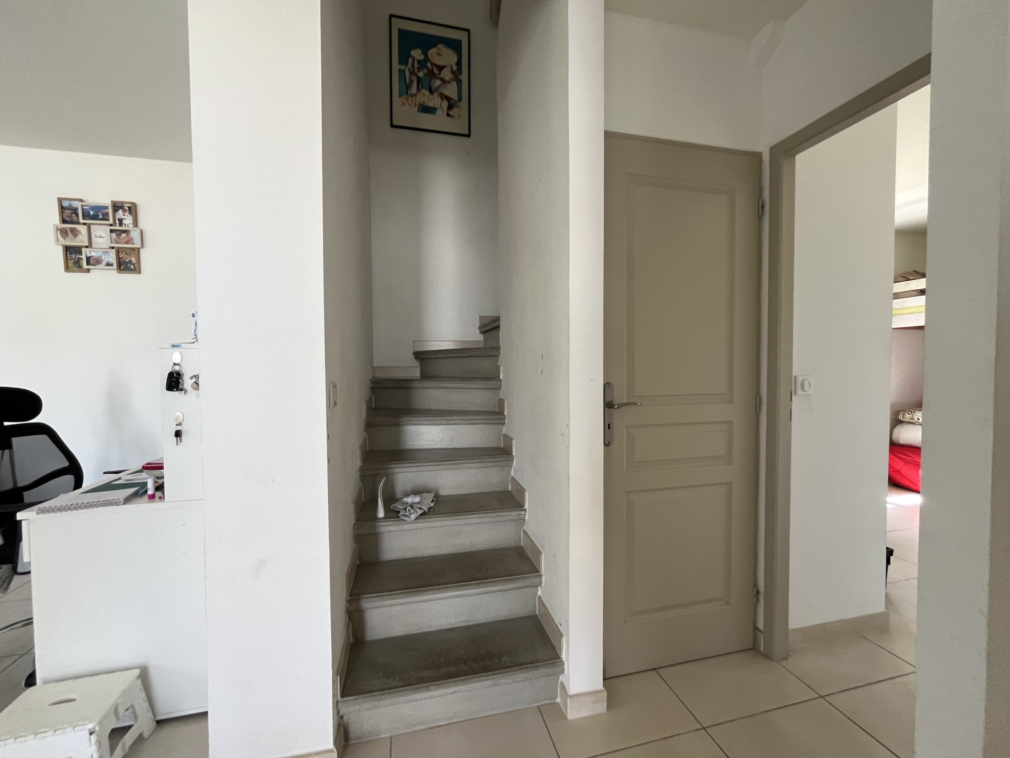 L'étage propose ,2 chambres avec placards et une salle de bain avec WC.