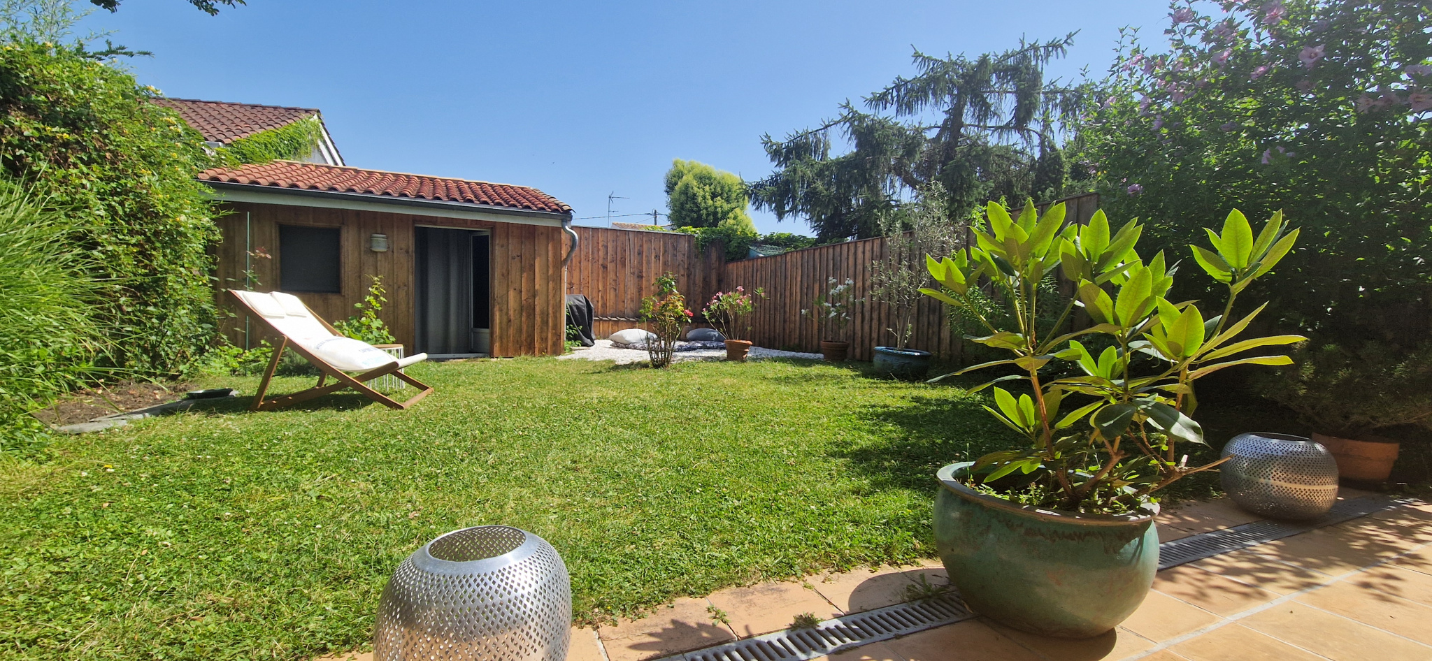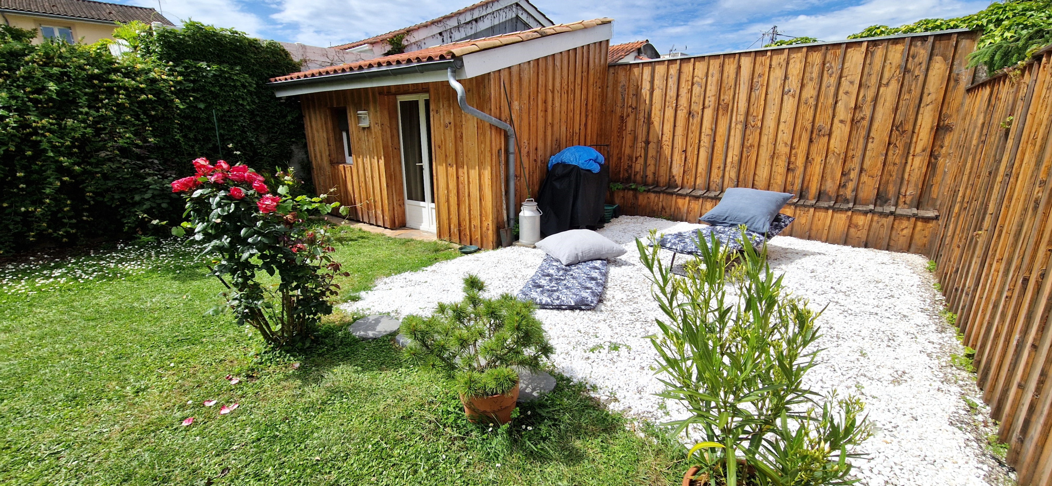 En fond de jardin, un cabanon aménagé vous permettra d'accueillir vos invités ou de profiter d'un espace indépendant au calme.