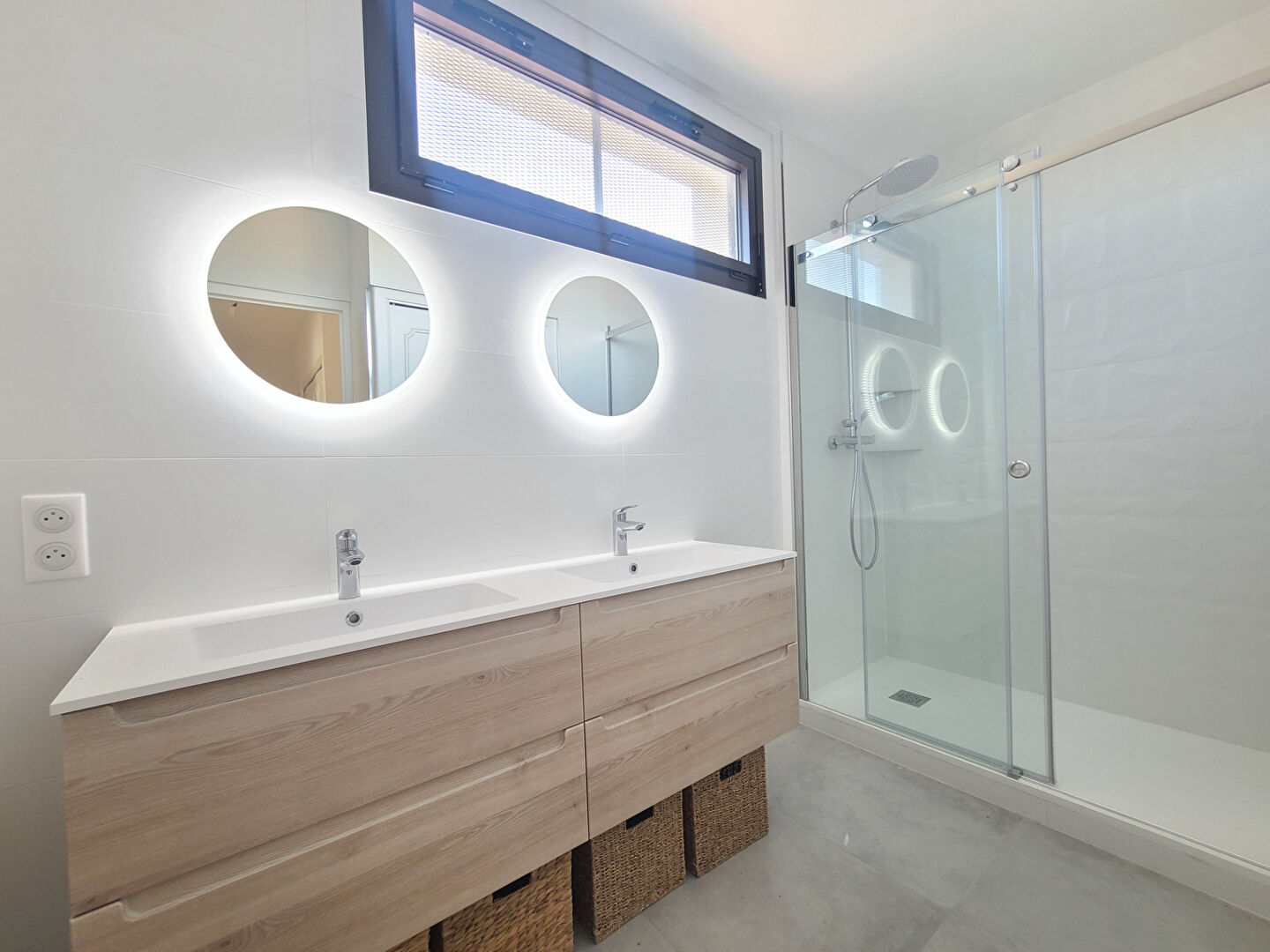 Entièrement rénové avec des matériaux de qualité, cuisine italienne, parquet, menuiseries alu double vitrage, wc suspendu.