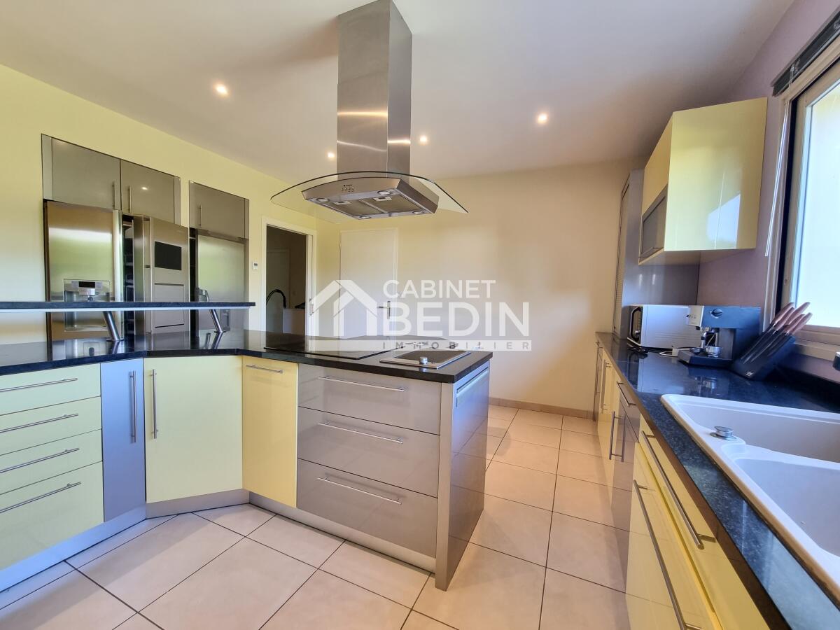 La maison de plain-pied, propose environ 200 m² habitables. Dès l'entrée, vous serez séduit par un patio paysagé et un séjour spacieux de plus de 46 m², baigné de lumière grâce à sa triple exposition. La cuisine, entièrement aménagée et équipée, est accompagnée d'un cellier et d'une cave.