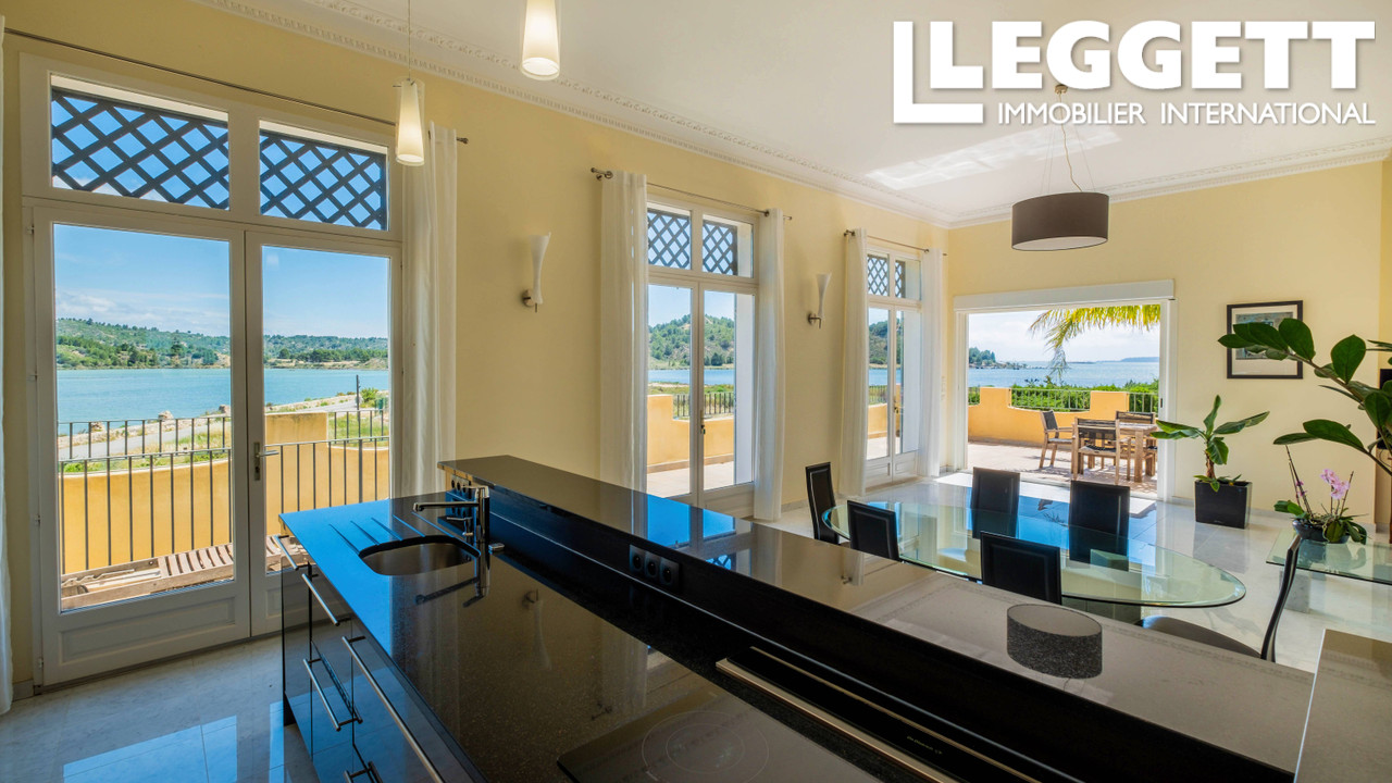 A29896JAV11 - Nichée dans le pittoresque village de Peyriac-de-Mer, à 20 minutes de Narbonne, cette maison de luxe offre des vues imprenables sur les lagunes et les collines depuis une terrasse de 54 m², ainsi qu'un cadre paisible. La propriété dispose d'une piscine d'eau salée de 4x7 mètres dans un jardin privé, de deux salons (dont l'un (60 m2) pourrait également être un bureau à domicile avec une entrée privée, une cuisine et une vue incroyable sur l'étang), deux cuisines, et de quatre chambres (dont trois avec salles de bains attenantes). Un garage spacieux de 61 m² avec porte roulante électrique, ainsi qu'un bureau et une buanderie ajoutent à la commodité. Idéale pour les amateurs de plein air, vous pouvez partir en bateau directement depuis la maison, ou faire une promenade panoramique jusqu'à l'abbaye de Fontfroide. Propriété unique pour un couple de retraités, une famille et/ou un entrepreneur à succès.