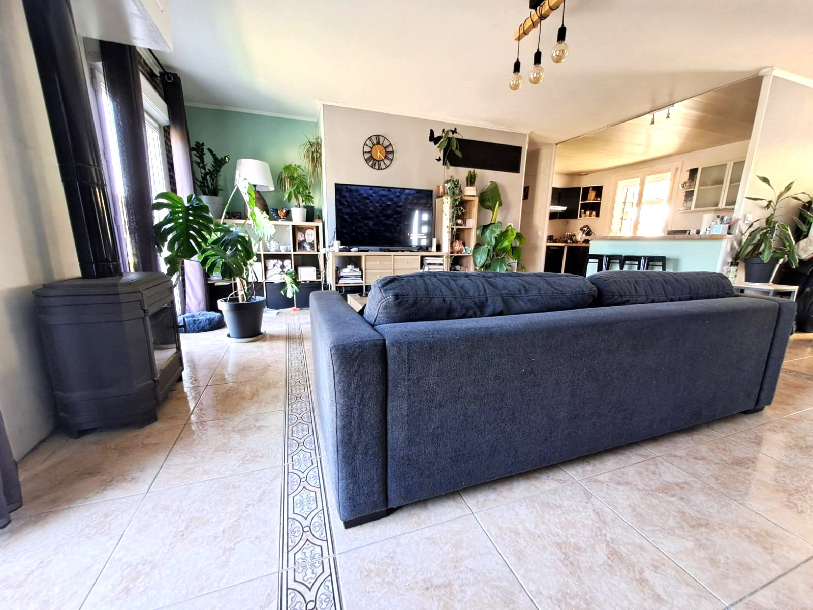 Il comprend une grande pièce de vie avec cuisine ouverte, un couloir qui dessert trois chambres et une salle de bain.
