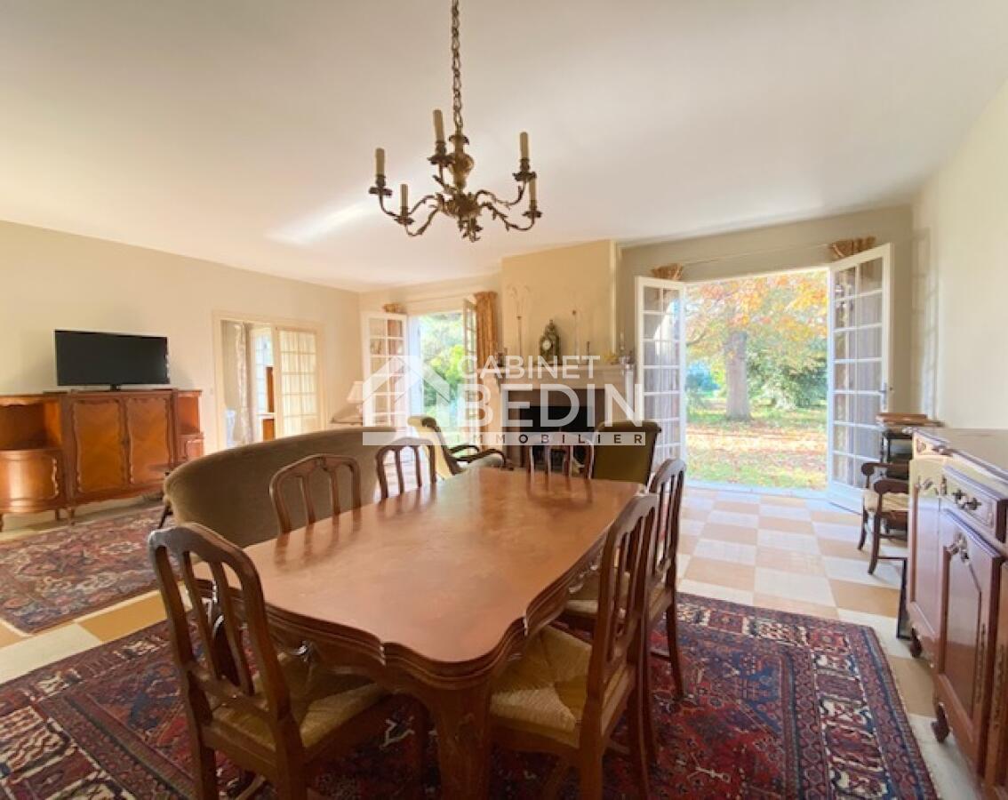le Cabinet Bedin Immobilier de Cauderan vous propose de découvrir cette grande maison située en seconde ligne et son grand parc boisé qui lui donne un charme et un potentiel exceptionnel.