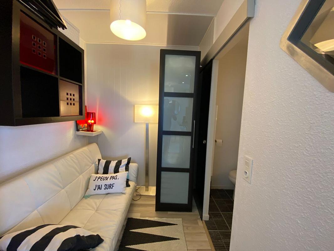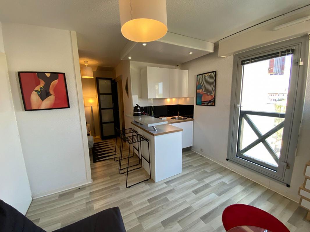 Hossegor plage Sud proche de la Centrale résidence du Point d 'Or superbe petit studio vendu meublé comprenant une pièce principale de séjour avec cuisine aménagée et équipée, une salle de bains, placard avec arrivée d'eau pour la machine à laver. Rénovation de goût et de qualité clés en main. Résidence équipée d'un ascenseur tout juste rénové.