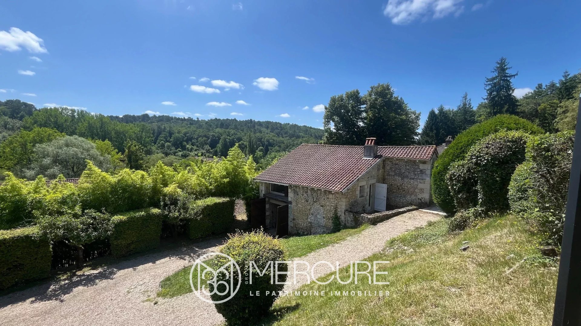 A proximité de Périgueux et de l’abbaye de Chancelade, dans un hameau, charmante propriété de caractère du XIXème offrant avec le logis et sa dépendance environ 260 m² habitables totalisant 10 pièces principales dont 6 chambres. Le logis, sur 3 niveaux, dispose de 180 m² avec 7 pièces principales. Cheminée XVIIIème, poutres apparentes, galerie périgourdine. Le domaine comprend également une maison d’amis, ancienne grange sur 2 niveaux de 110 m² au sol dont 80 m² ont été rendus habitables : un grand salon et 2 chambres avec leur salle de bains. En sous-sol, un grand garage de 80 m², une cave à vin et des ateliers. Parc de 4 000 m² arboré et fleuri comprenant une piscine.