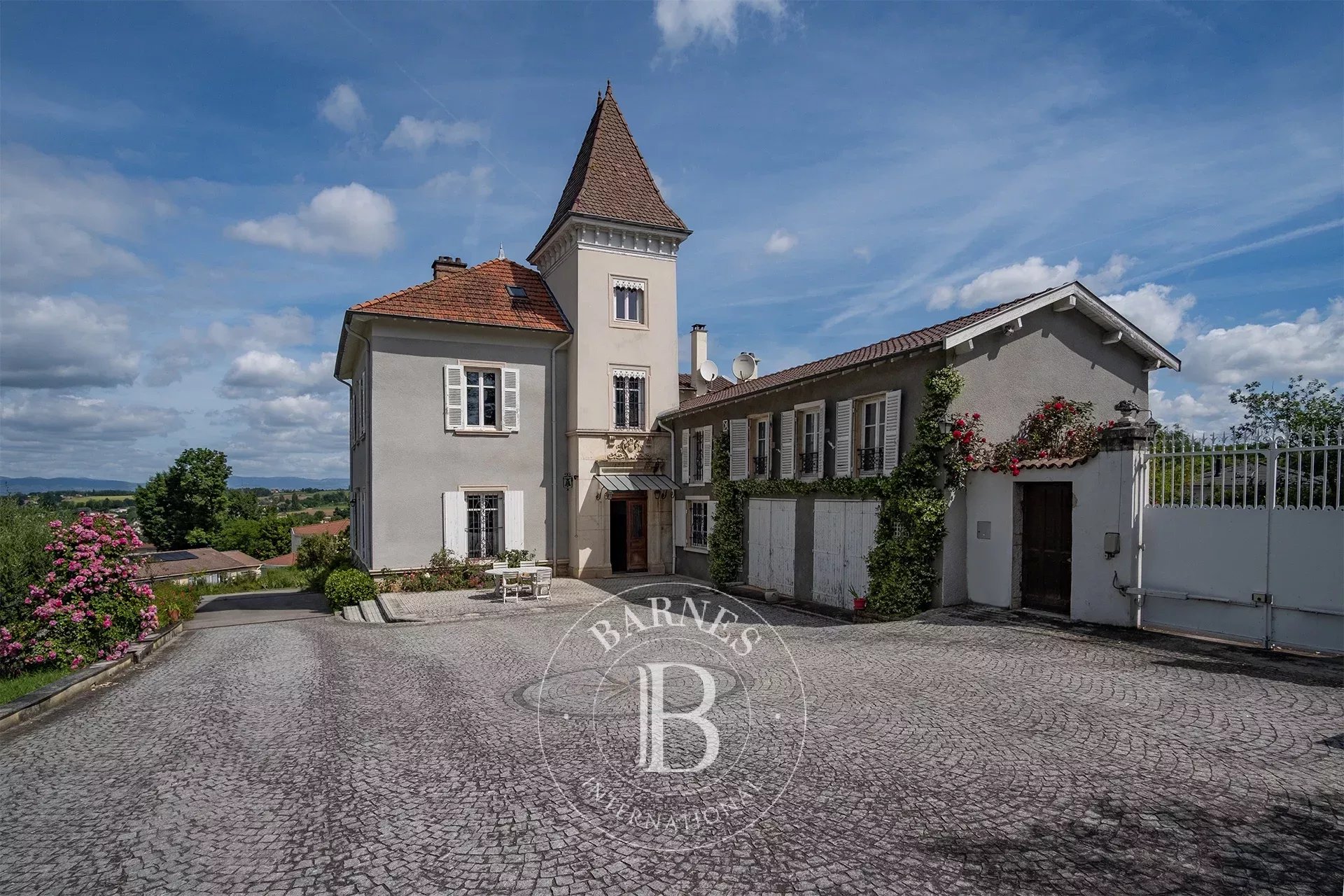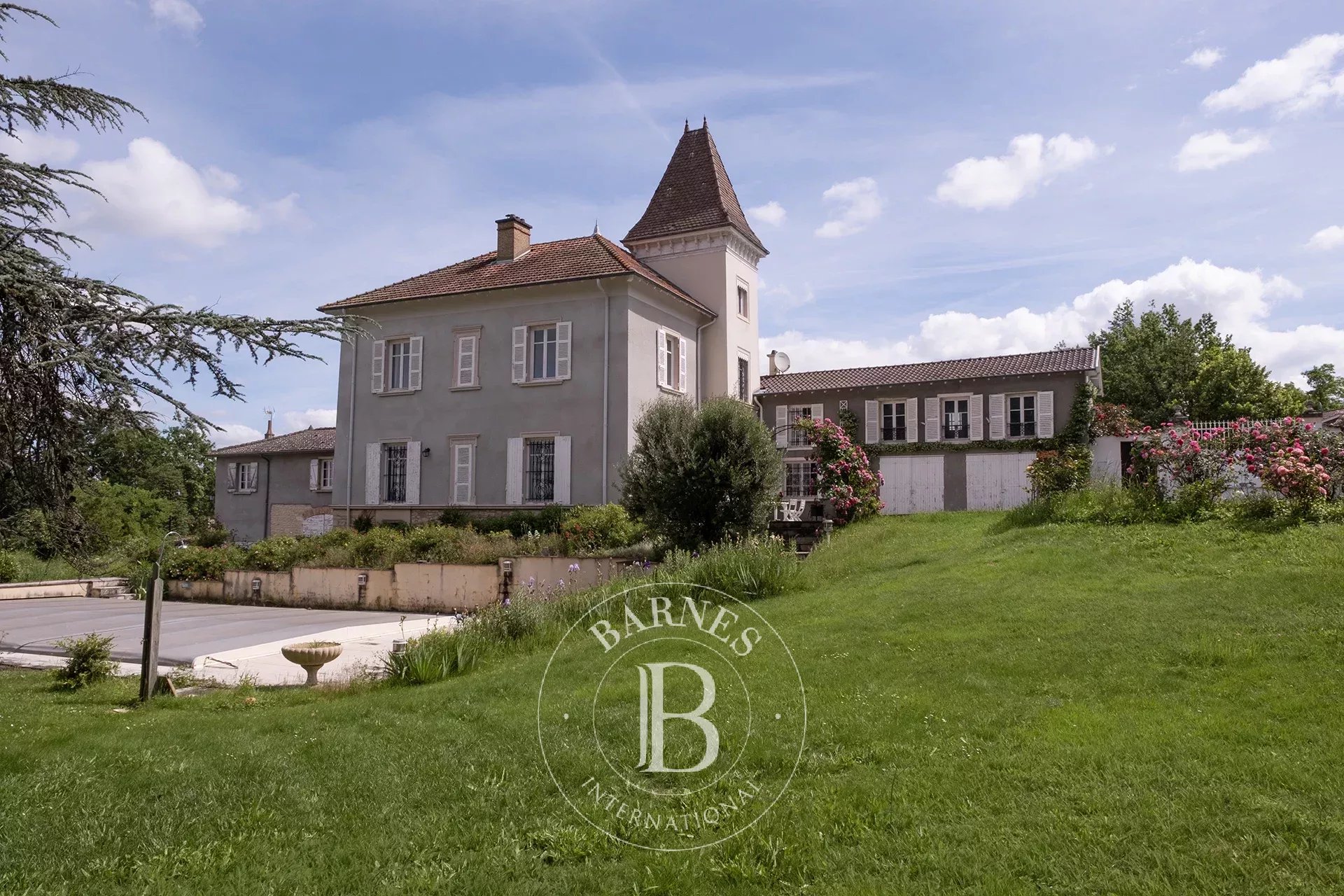 SAINT-DIDIER DE FORMANS - Dans le centre du village, cette propriété au caractère bourgeois unique prend place au coeur d'un parc clos et arboré de 10318 m² avec vue sur le beaujolais ( et en parti constructible ).
