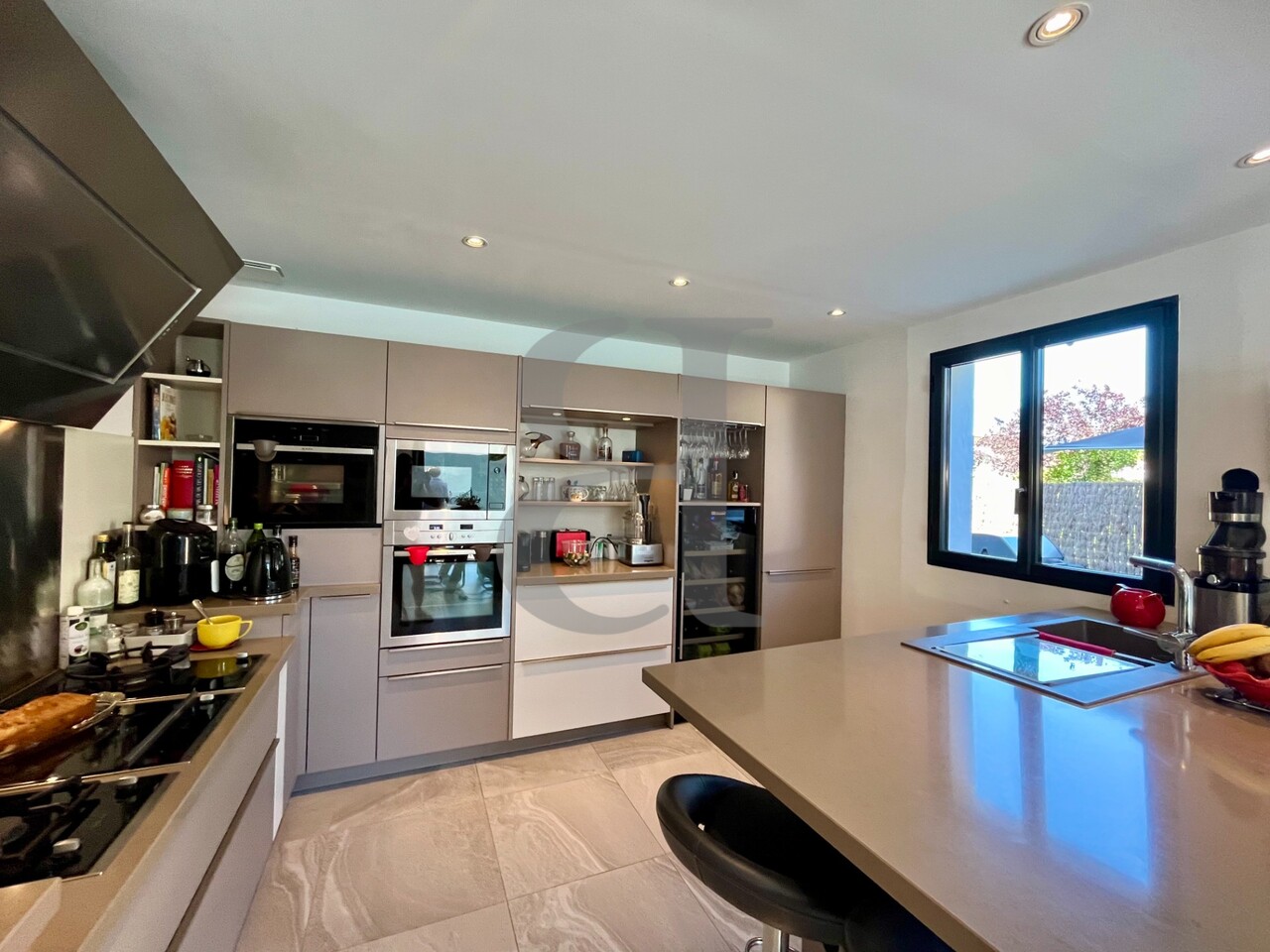 Côté extérieur, place à la détente avec une jolie piscine chauffée avec fonction jacuzzi et nage à contre-courant, ainsi qu'une grande terrasse offrant différentes expositions Est et Sud. Un potager devant la suite parentale et un jardinet aux essences méditerranéennes côté Ouest agrémentent le jardin.