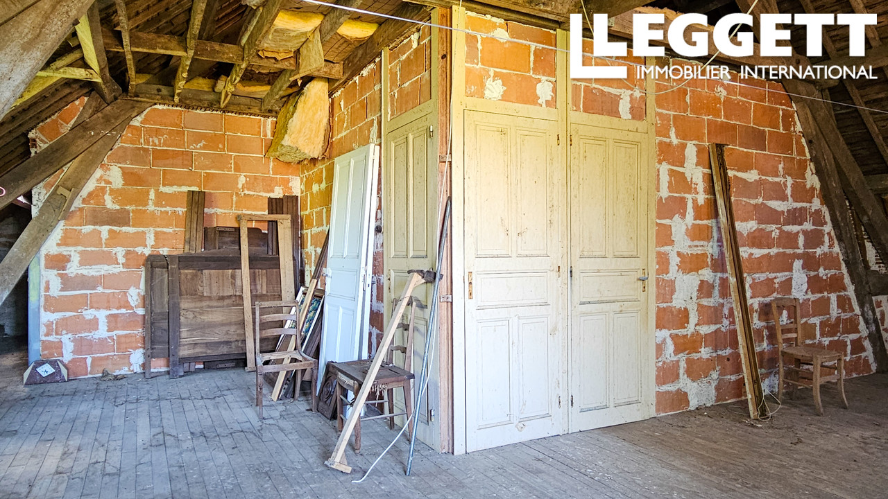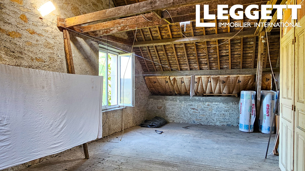 A l'étage par un escalier en bois massif se trouvent actuellement deux chambres lumineuses et aérées ainsi qu'un grand grenier à aménager pouvant accueillir deux chambres supplémentaires et une salle de bain.