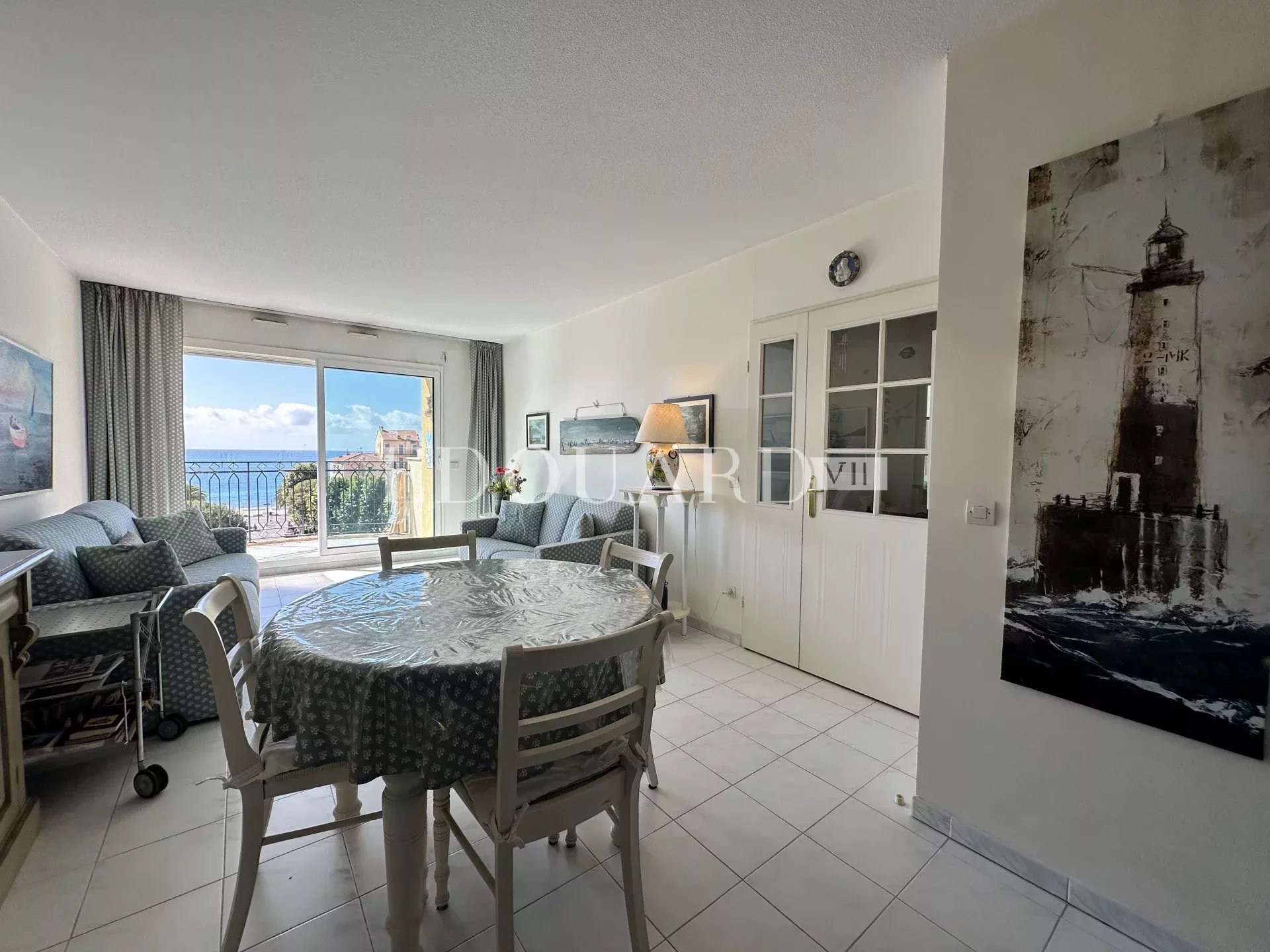 En exclusivité deux pièces à vendre dans le centre de Menton, à quelques pas de tous les commerces, des plages et de la gare principale. Au sixième et avant dernier étage d'un bel immeuble de standing, appartement de 47 m² en très bon état avec porte blindé, double vitrage et volets roulants électriques. Composé d'entrée avec placard, lumineux séjour, cuisine américaine équipée (réfrigérateur, congélateur, plaque de cuisson, lave-vaisselle, lave-linge), chambre avec placard, salle de douche avec WC et bidet, 5 m² de terrasse avec belle vue panoramique sur la ville jusqu'à la mer. Idéalement exposé Sud et très ensoleillé, produit intéressant.