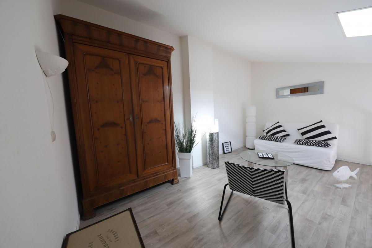 A l'étage, une grande mezzanine de 17,5 m² avec Vélux pour créer une chambre, un bureau et un coin rangement.