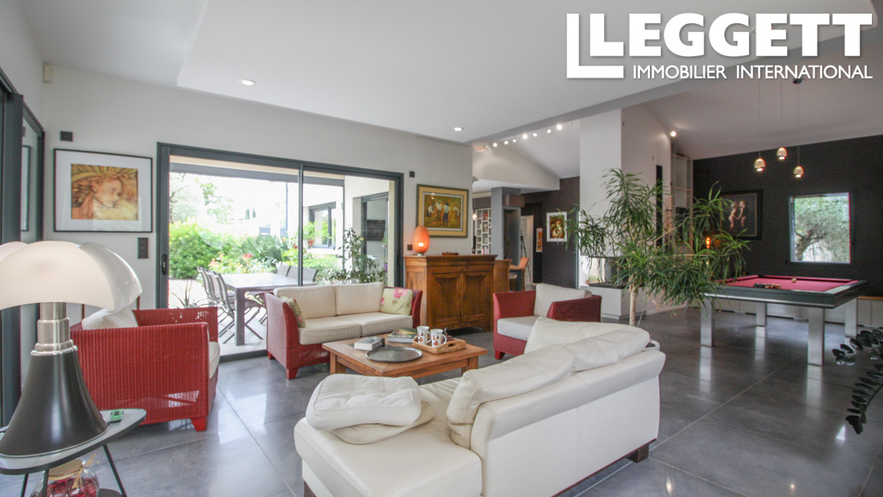 A30231JB26 - Une maison d'architecte construite en 2013, dans un jardin magnifiquement arboré et conçu pour peu d'entretien. La piscine chauffée vous accueille, ainsi que vos amis, qui peuvent résider dans un gîte de 6 personnes sur le même terrain.