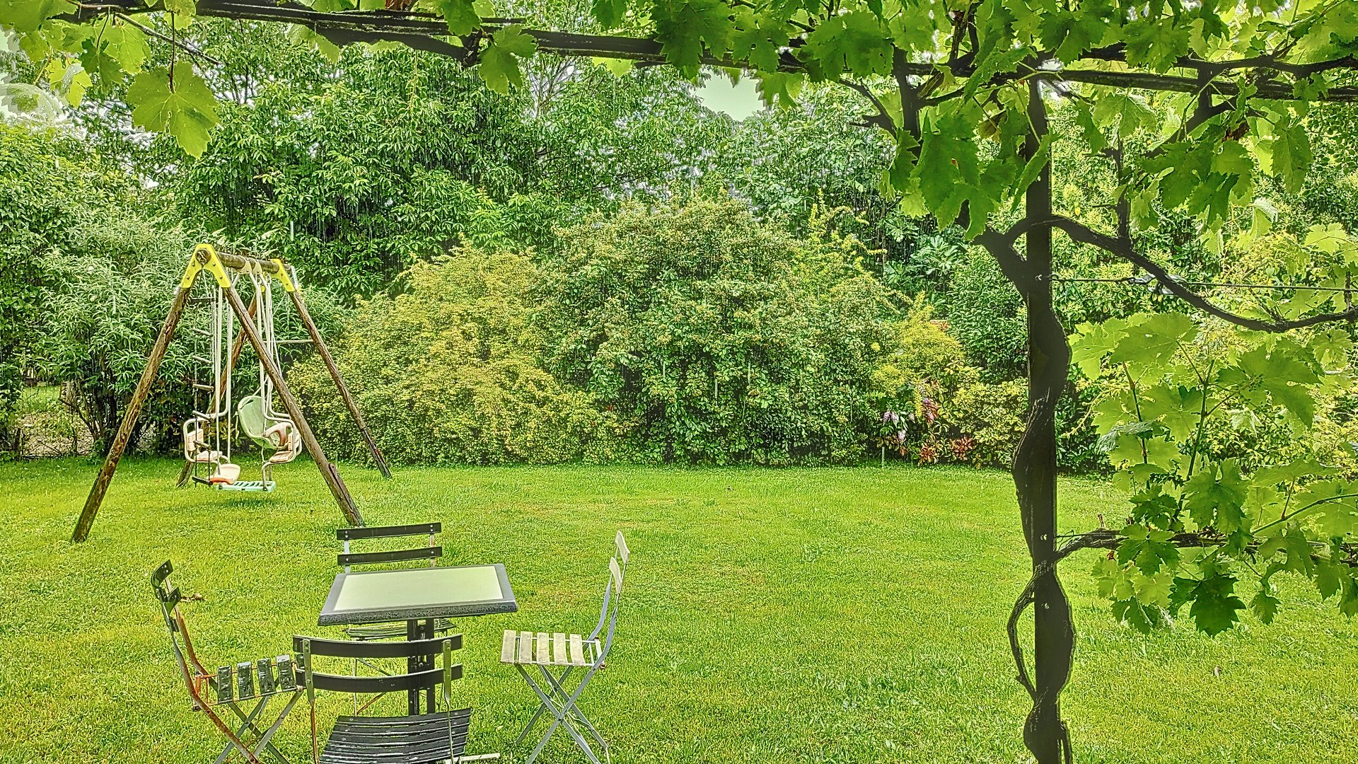 Grande terrasse couverte équipée d'une cuisine d'été. Terrain arboré avec fruitiers 2 120 m².