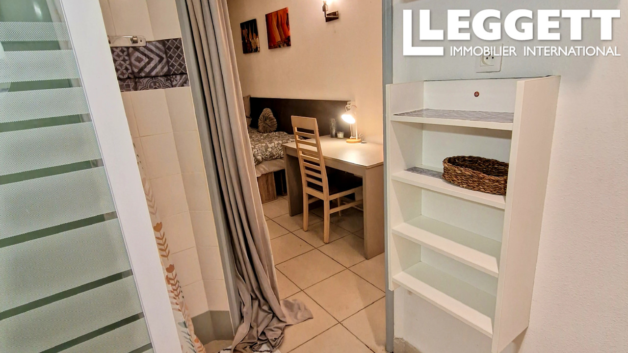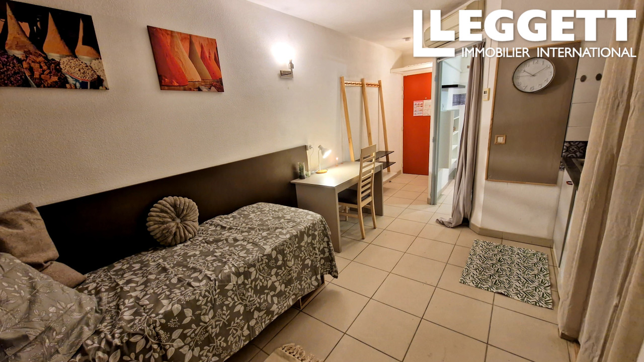Situé en RDC dans une résidence calme et sécurisée aux normes PMR avec piscine, le bien est composé d'une pièce à vivre d'environ 12 m2 avec kitchenette et espace de rangement ainsi qu'une salle d'eau de 6 m2 avec WC et est équipé de la climatisation réversible.