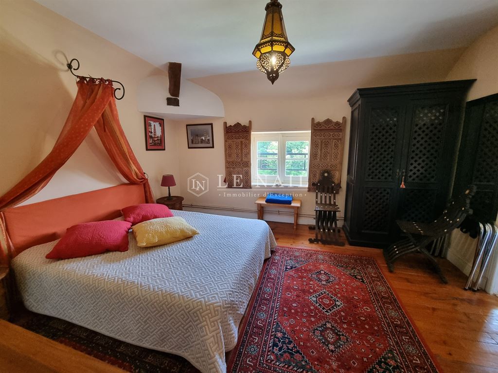 Le domaine s’étend sur près de 4,5 hectares de parc paysager, entièrement clos, offrant un cadre à la fois privé et serein. On y trouve un parking ombragé, des espaces boisés plantés de majestueux séquoias centenaires et de saules pleureurs, de vastes pelouses soignées, ainsi qu’un étang poissonneux, refuge naturel pour cygnes et canards. Un ponton et un sentier en font le tour, invitant à la promenade ou à la contemplation. La piscine chauffée (15 x 6 m, profondeur 1,40 m) est sécurisée et bordée d’une terrasse, idéale pour les journées ensoleillées. À l’arrière du château, un agréable espace repas en plein air avec barbecue, situé à proximité de l’étang, complète parfaitement ce lieu propice à la détente et à la convivialité.