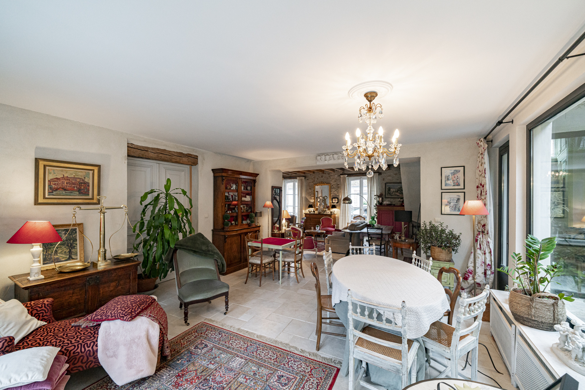 Les éléments d'origine ont été préservés avec attention : tomettes authentiques, parquets anciens qui craquent sous les pas, pierre de Saint-Gilles aux tons chaleureux. Les jeux de lumière autour du patio confèrent à l'ensemble une élégance intemporelle et une atmosphère unique.