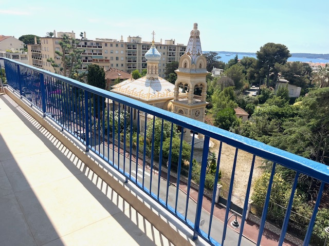 Au coeur de la Basse Californie, face église Russe,superbe appartement de type T4 gand séjour donnant sur l'église Russe et les iles de Lérins 3 grandes chambres en suite, terrasse est, sud et ouest soit 33 m2 de terrasse avec vue mer et verdure. Idéalement situé commerce et la Croisette à deux pas il bénificie d'un garage une cave en sous-sol et d'un parking extérieur sécurisé en option 30 000 EUR. Rénovation de luxe juste à poser les valises.
