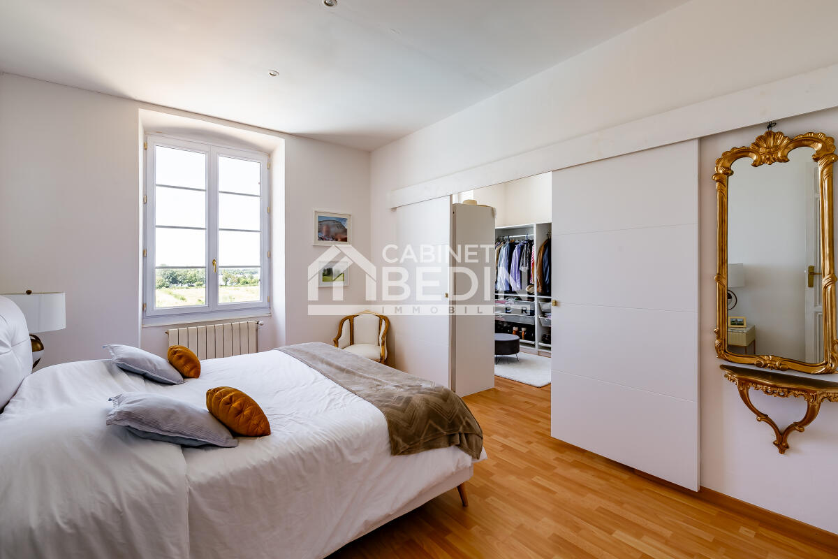 BOURG SUR GIRONDE. Niché au creux d'une falaise, surplombant la Dordogne depuis sa magnifique terrasse en travertin avec piscine chauffée, venez découvrir cet ancien château viticole du XVIIe siècle, parfaitement rénové, son gîte indépendant et ses nombreuses dépendances. Exposées plein sud, les pièces de vie sont très lumineuses et leurs majestueuses cheminées ainsi que la hauteur sous plafond, les poutres apparentes et les mûrs en pierre de taille assurent un cachet indéniable à cet édifice. Avec 4 chambres, une cuisine toute neuve, des pièces et greniers facilement aménageables, elle s'adaptera à toutes les familles, le gîte comprenant lui une spacieuse pièce de vie et 2 autres chambres avec salle d'eau privative. Les dépendances supplémentaires permettent de créer autant d'activités que nécessaire. Un jardin avec arbres fruitiers ainsi qu'un patio privatif complètent ce bien unique dans le secteur. Vous n'avez plus qu'à profiter des balades et activités de cette belle région. . Les informations sur les risques auxquels ce bien est exposé sont disponibles sur le site Géorisques : www. georisques. gouv. fr. Montant estimé des dépenses annuelles d?énergie pour un usage standard : entre 1402 et 1898 Euros/an (année de référence 2021)