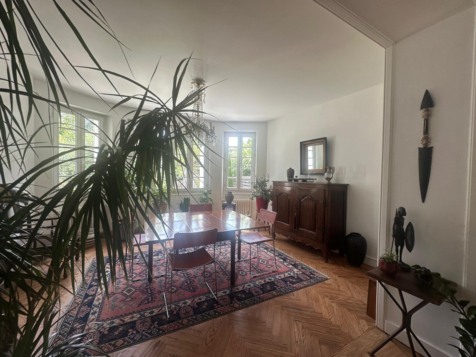 L'étage dessert 3 grandes chambres, parquets anciens conservés, salle de bain avec douche, bureau, grande terrasse permet de profiter de la vue et du jardin en toute intimité.