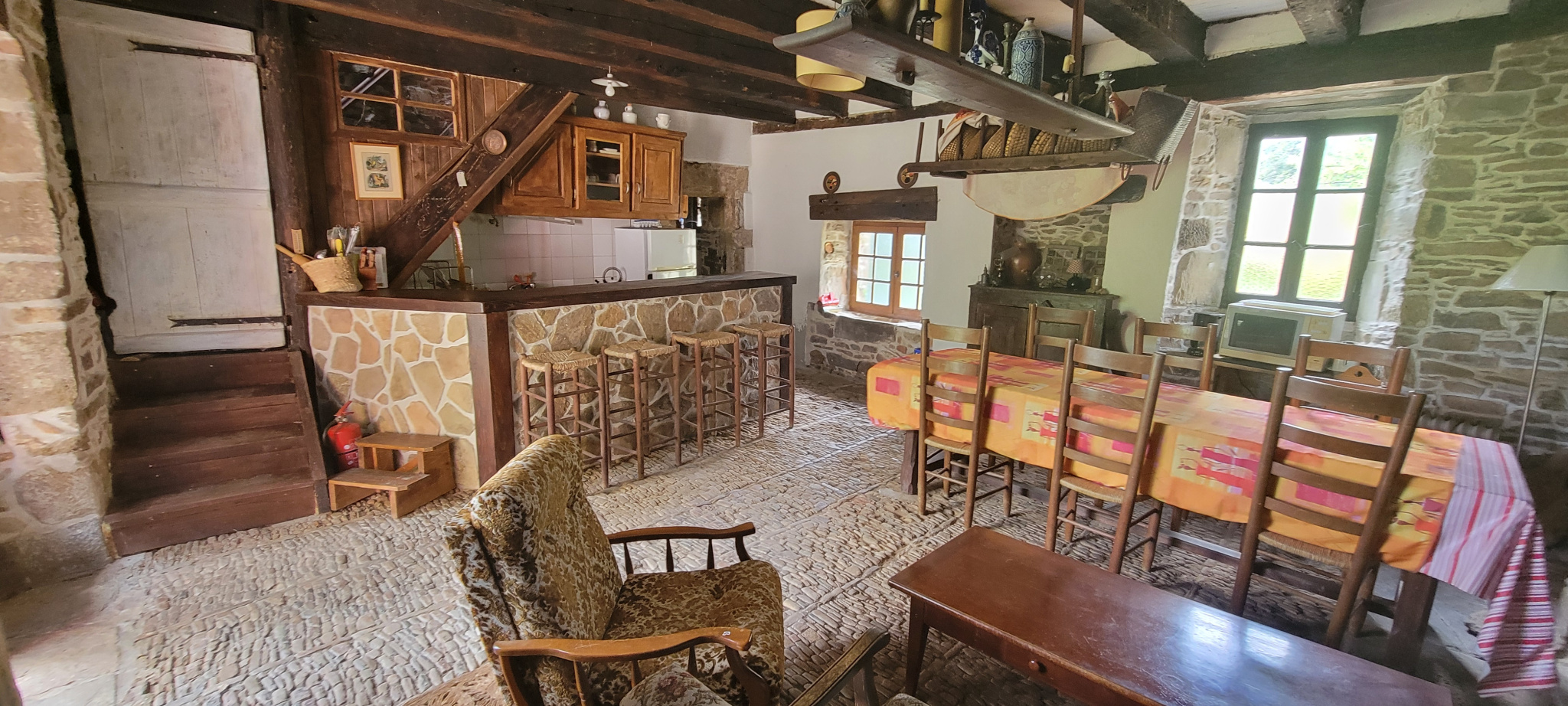 Cet ensemble sur les hauteurs de Beynat comprend une maison construite en pierre en 1633 et composée d'un séjour avec un sol en galets, coin cuisine et cantou, 3 chambres, une salle d'eau avec WC à l'extérieur et une cave voutée, habitable de suite mais nécessite des travaux pour y vivre à l'année.