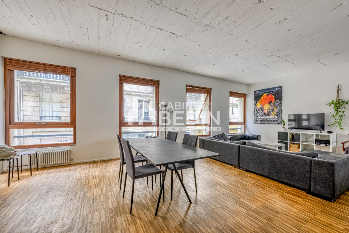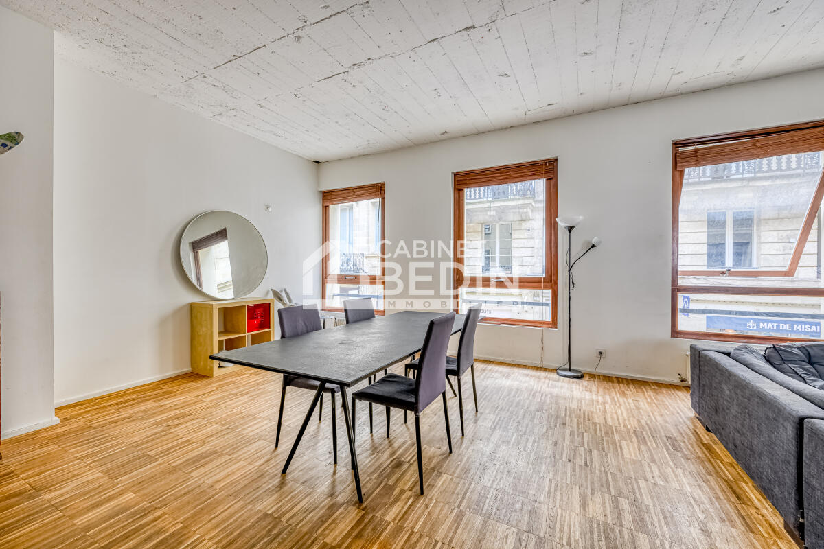 Entre la Place Pey Berland et le Cours de l?Intendance, le Cabinet Bedin Immobilier vous propose ce bel appartement esprit industriel, situé au 1er étage d?un immeuble de caractère.