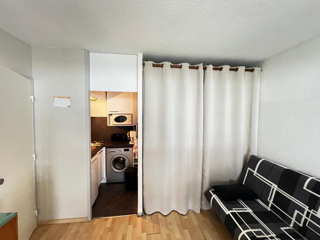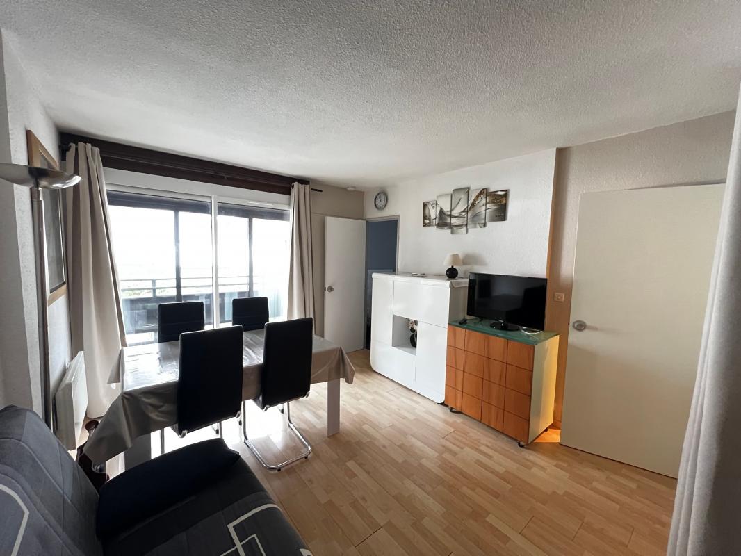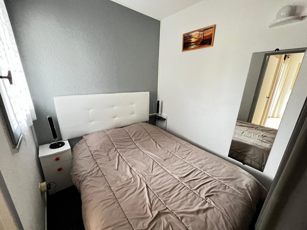 Il se compose: d'une entrée, d'un séjour salon avec coin cuisine et coin nuit accueillant un lit superposé, une chambre avec placard, une salle d'eau avec wc et un balcon fermé en véranda.