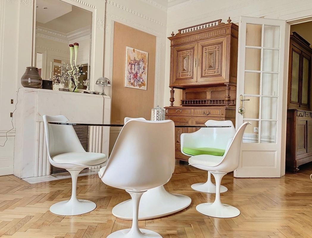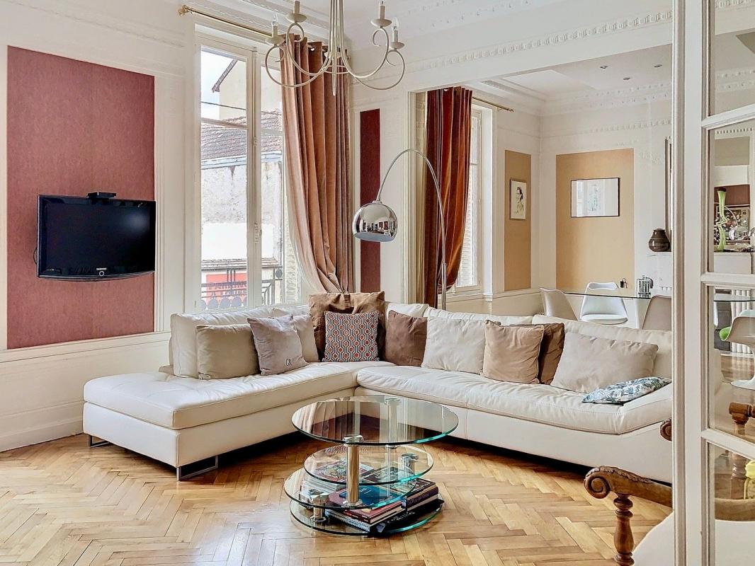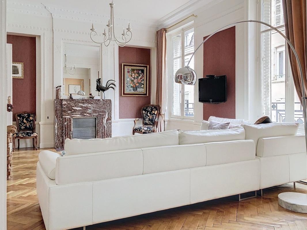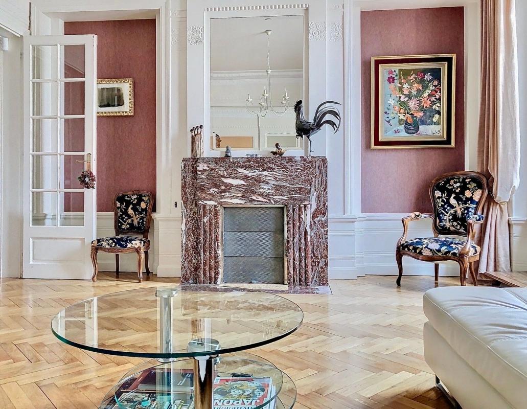 Ce sublime appartement de 140 m2 situé au premier étage d'un immeuble particulier, se compose : d'une entrée, d'une cuisine aménagée et équipée, d'un séjour double avec deux cheminées, 3 chambres dont une avec salle d'eau privative, d'une salle de bains et d'une belle entrée.