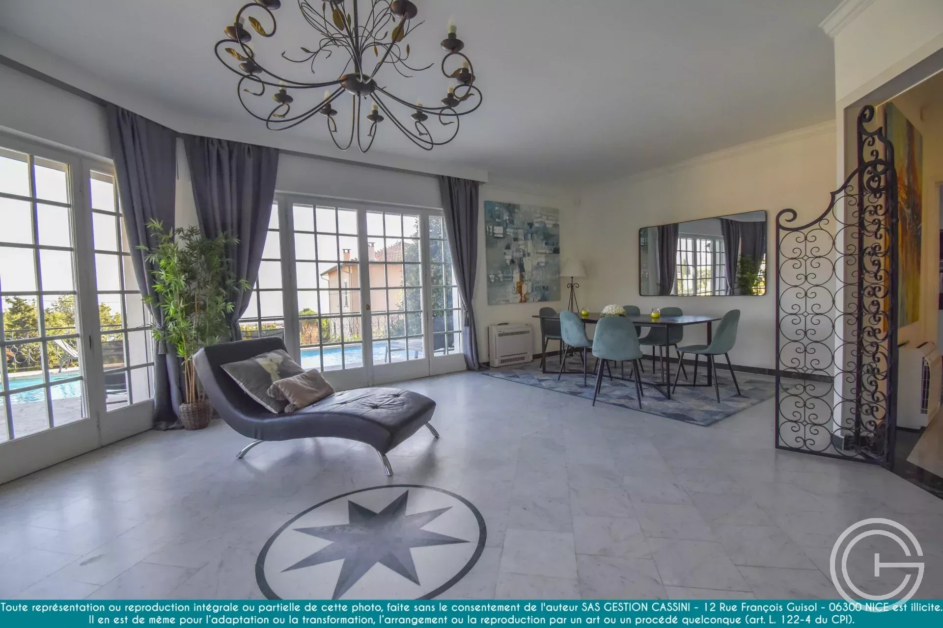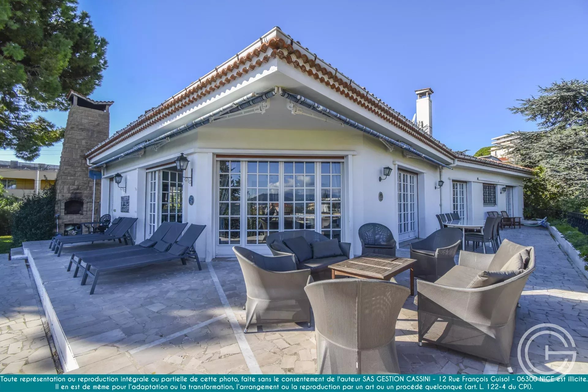 Double séjour lumineux de 55m², ouvrant sur des terrasses ensoleillées, climatisation, cheminée, et un grand garage. Contactez-nous pour une visite et faites le premier pas vers la villa de vos rêves à Nice !