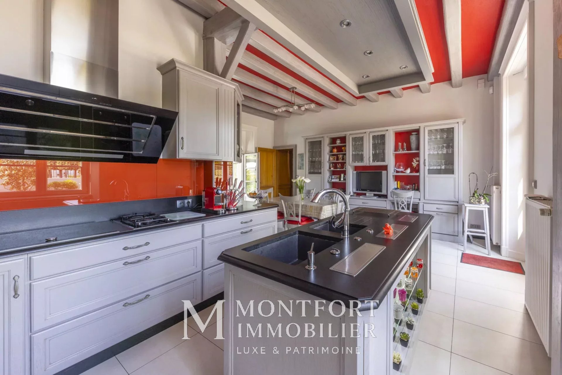 Au rez-de-chaussée sur 360 m² habitables, hall d’entrée, vestiaire et WC, vaste salon séjour de 66 m² avec cheminée donnant sur une véranda de 56 m², cuisine aménagée et équipée de 32 m², master room de 26 m² et salle de bains avec douche et WC de 23 m²....