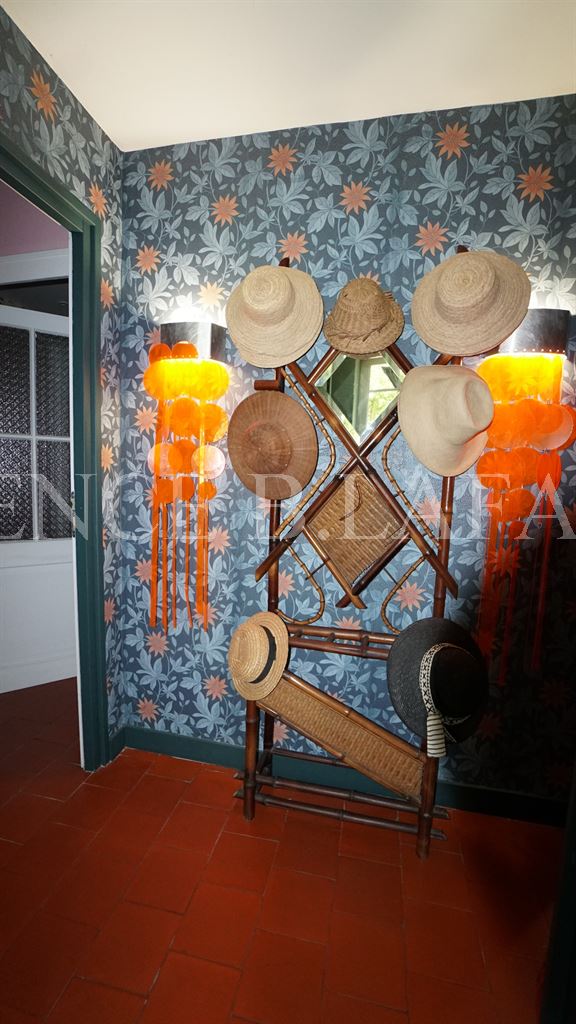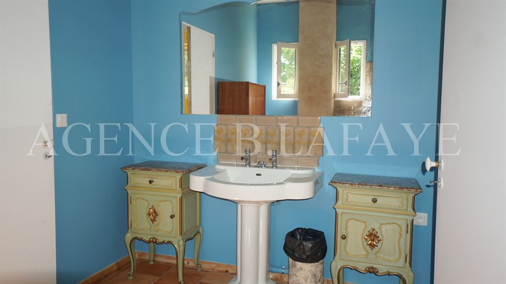 Elle se compose au rez-de-chaussée d'une entrée, salon, salle à manger en enfilade avec cheminée pierre, cuisine donnant sur jardin, 3 chambres ouvertes sur le parc, chacune avec leur sanitaire, 4 wc; à l'étage : vaste séjour bibliothèque, 3 chambres, 2 salles d'eau, dressing. 2 gites et grande salle de réception, piscine, beau jardin clos. Très calme et beaucoup de charme