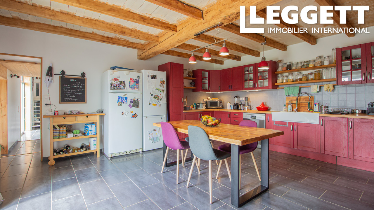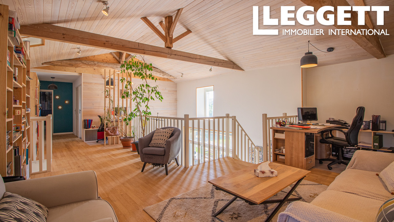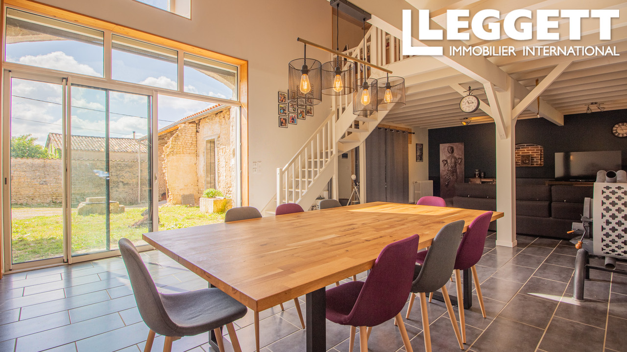 A30673ASO16 - Ancienne grange entièrement rénovée de 250m2, lumineuse, avec un grand garage double et une grange d'environ 60m² encore à rénover. Le jardin est entièrement clos avec deux portillons dont un neuf, électrique, ainsi qu'un portail électrique, neuf également et visiophone.