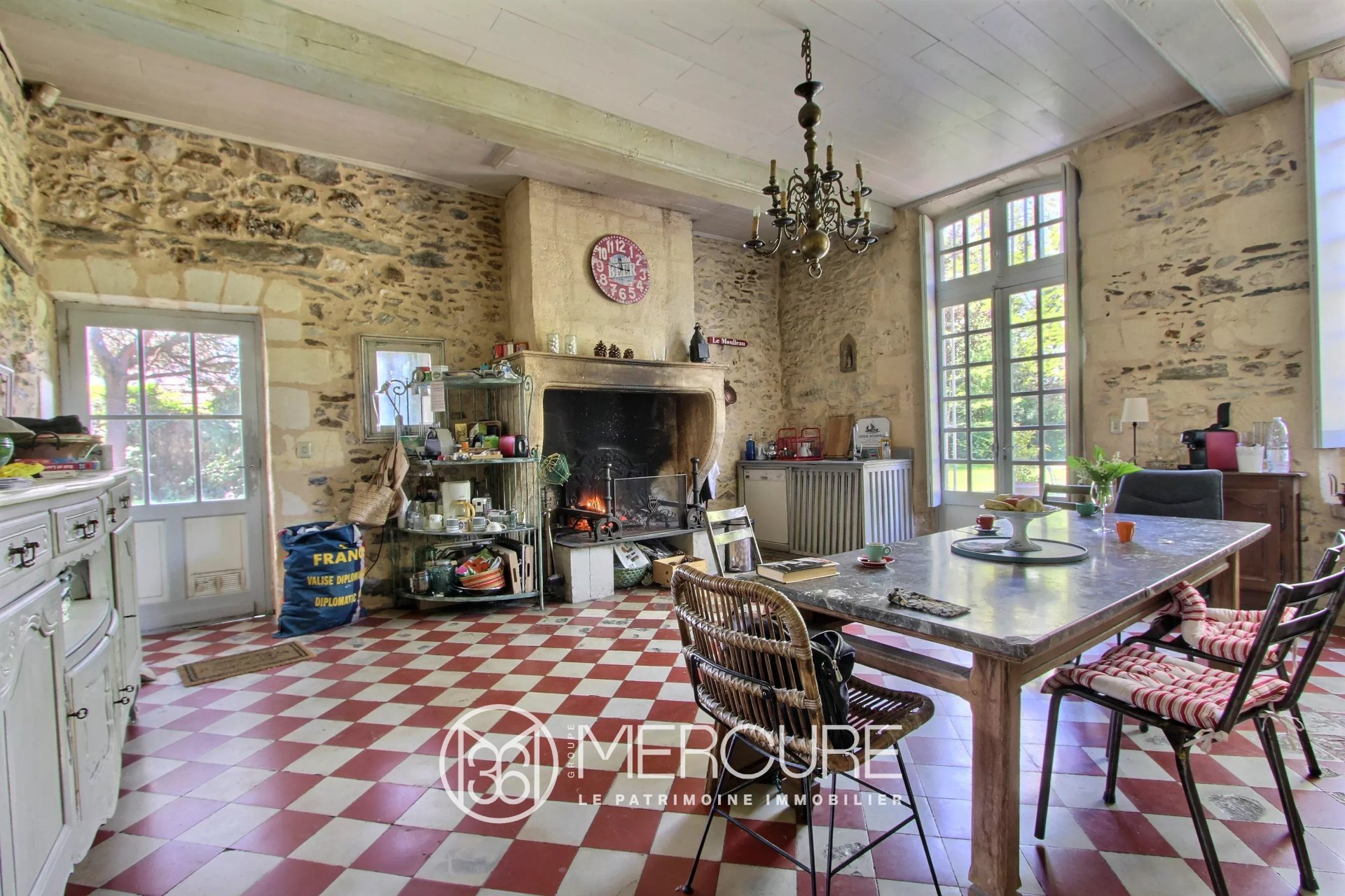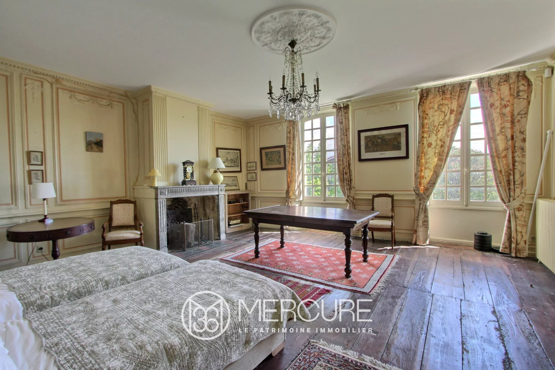 Au rez-de-chaussée, une belle entrée traversante dessert d’une part un salon de 38 m² prolongé d’un bureau-bibliothèque, une chambre avec salle d’eau, d’autre part belle salle à manger et authentique cuisine familiale avec cheminée.