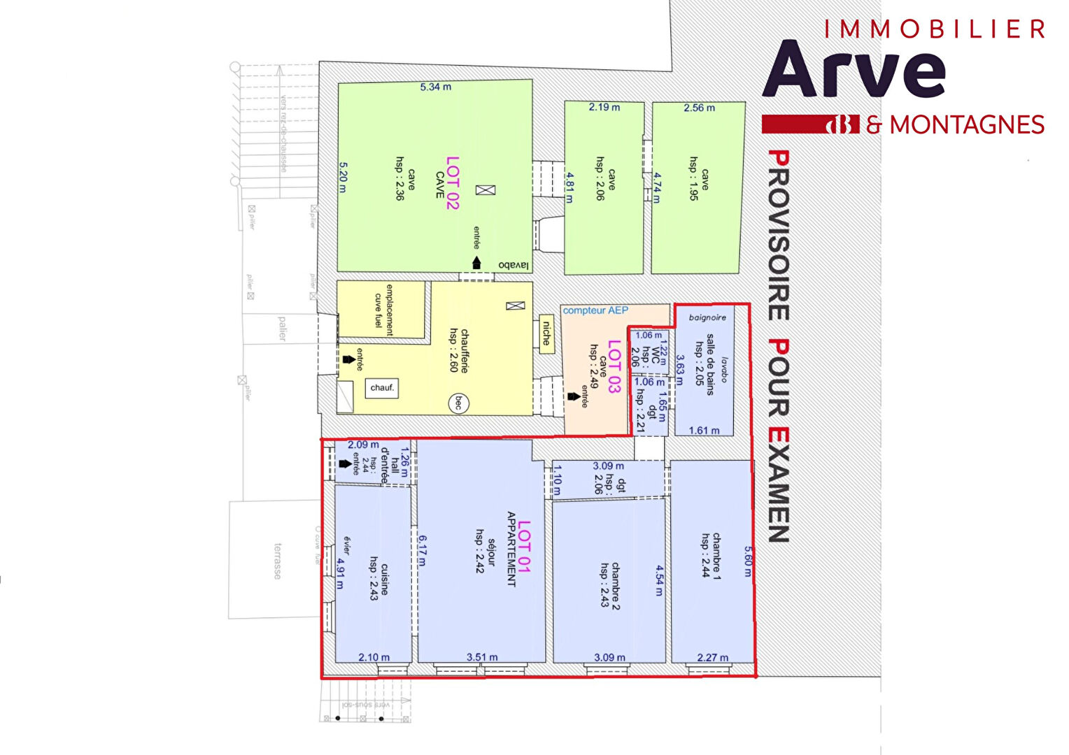 Immobilier Arve et Montagnes vous propose à la vente un appartement T3 avec jardin de 250m², 3 caves et 2 places de parking privatives.