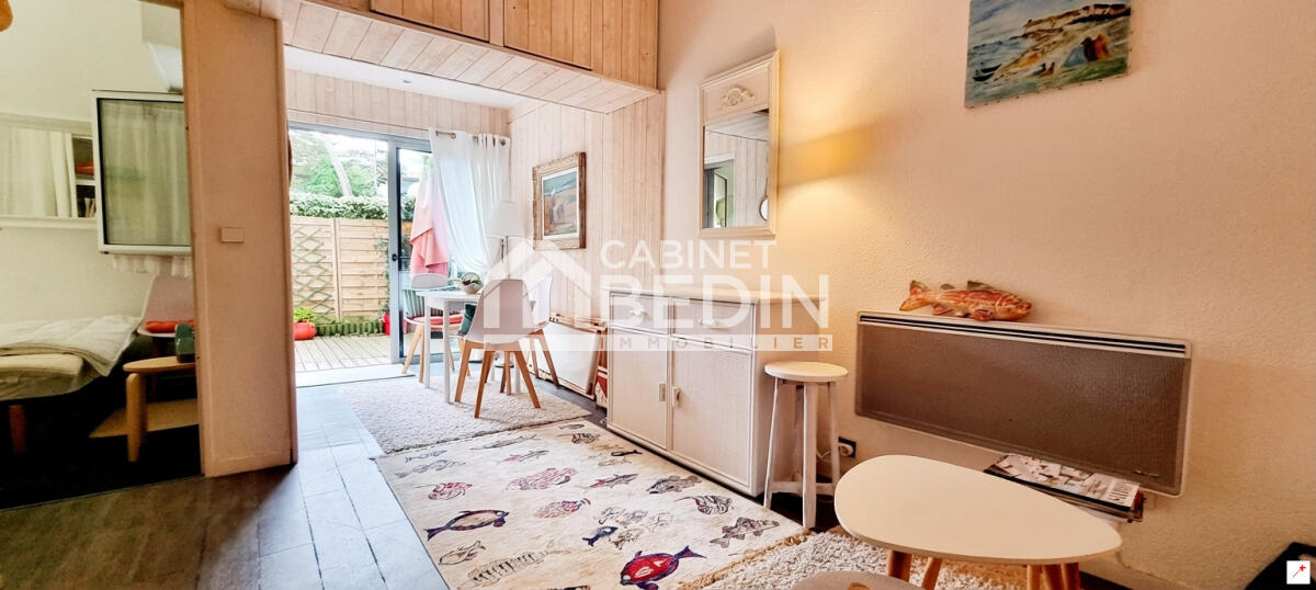 LE MOULLEAU. Idéal pour vos week-end ou séjours prolongés, agréable T1 bis situé en rez de chaussée avec terrasse, au c?ur du Moulleau. Exposé sud et au calme, cet appartement jouit d'une situation exceptionnelle. Sans travaux vous profiterez immédiatement de ses qualités, à noter également, un parking et un local pour vélo, deux atouts non négligeables pour une vie pratique et organisée.
