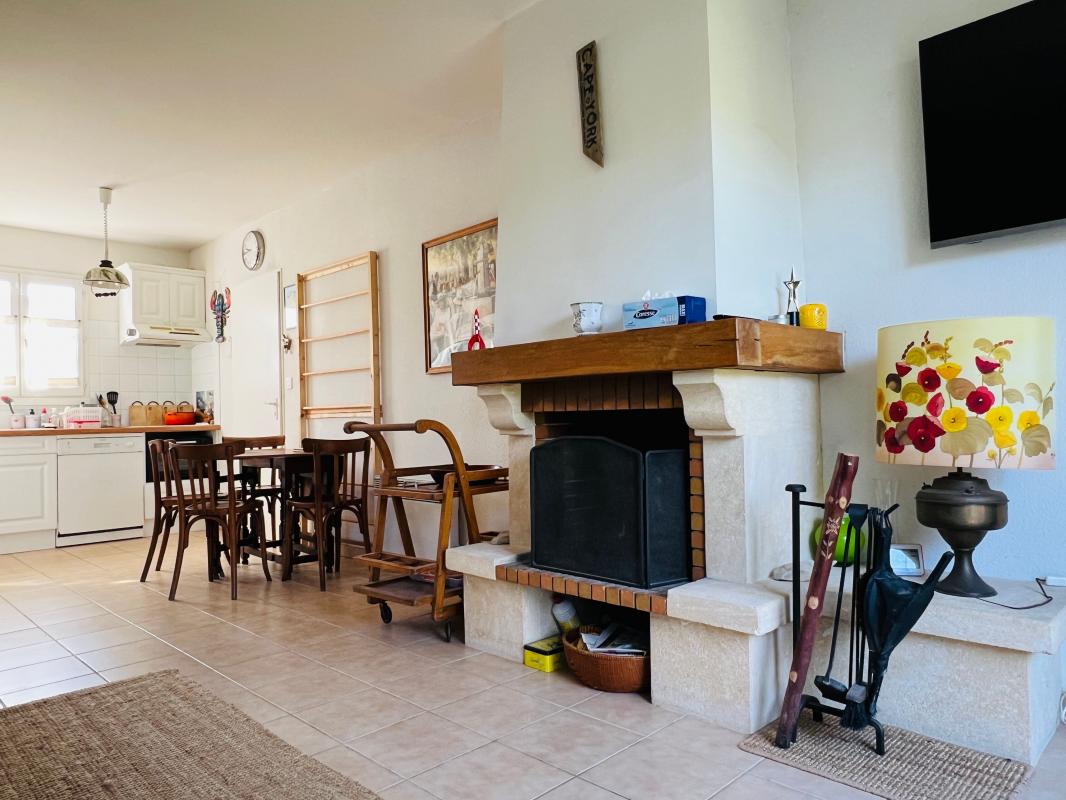 offrant au rez de chaussée : une entrée, un wc, une pièce de vie avec cheminée, coin cuisine aménagé et équipé