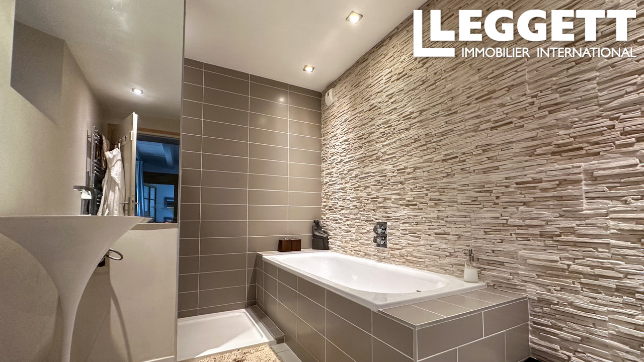 Au rez-de-jardin, auquel on accède depuis la cuisine du rez-de-chaussée ou par une entrée privée dans le jardin, se trouve un grand studio de 38 m² avec une superbe salle de bains de style caverne. Veuillez noter que la cuisine n'a pas encore été achevée et que la salle de bains nécessite quelques travaux de rénovation.