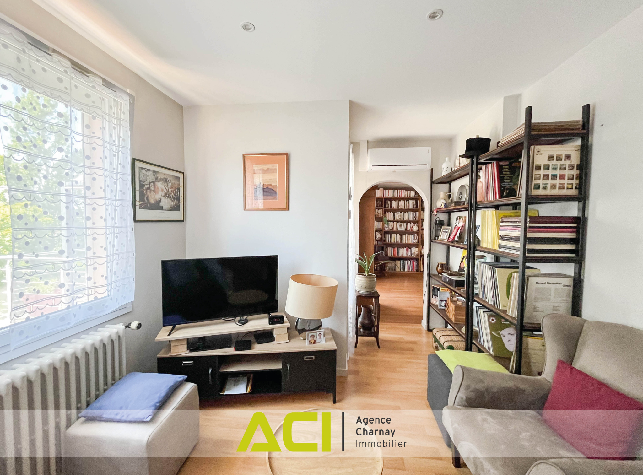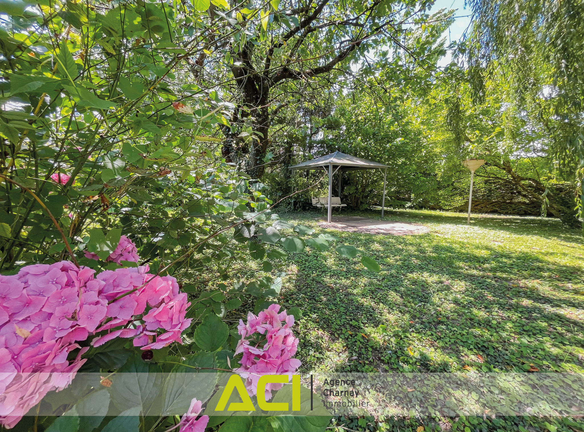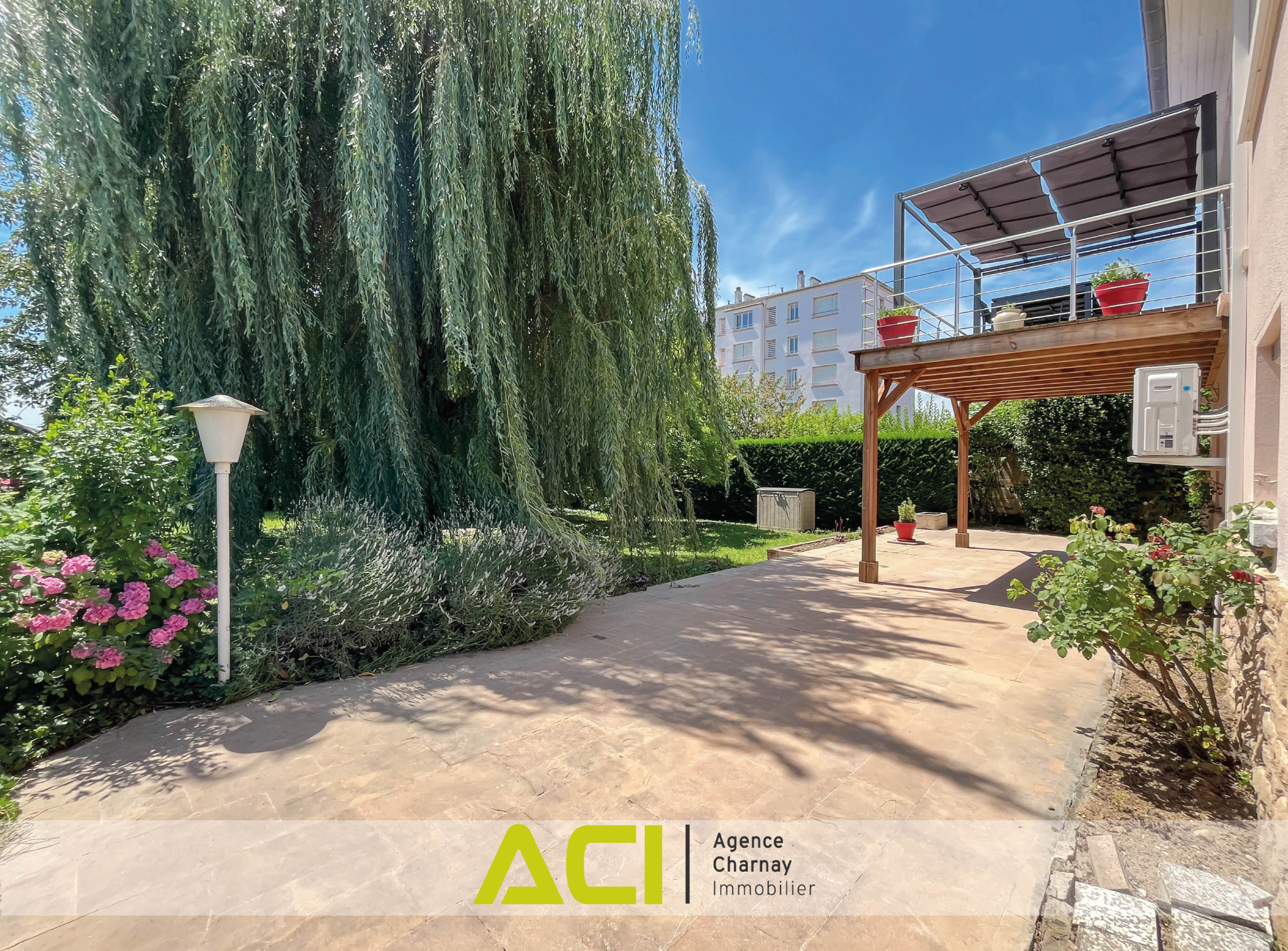 Située en plein coeur de CHARNAY LES MACON, à proximité immédiate des services et commerces de la Coupée, belle maison traditionnelle d'environ 155 m2 composée comme suit : au rdc : hall d'entrée, garage un véhicule, cave, buanderie, dégagement avec placards desservant deux belles chambres dont une avec accès direct sur le jardin, une salle d'eau avec wc ; à l'étage : cuisine, vaste de séjour donnant sur terrasse Sud, petit salon à la suite, dégagement avec wc desservant deux autres chambres ainsi qu'une salle d'eau ; à l'extérieur : cour avec portail motorisé sur rue, seconde terrasse et grand jardin avec cabanon, le tout édifié sur une parcelle de plus de 1 000 m2. Menuiseries double-vitrage avec volets motorisés - Chauffage central au gaz de ville - Climatisation - Adoucisseur et aspiration centralisée - Bon état d'entretien - Environnement calme et verdoyant - Toutes commodités accessibles à pied.