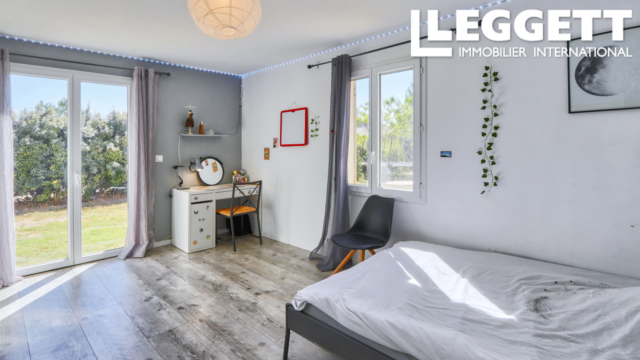 D'un côté du salon: une salle de bains et 4 chambres, chacune avec des baies vitrées donnant sur le jardin.