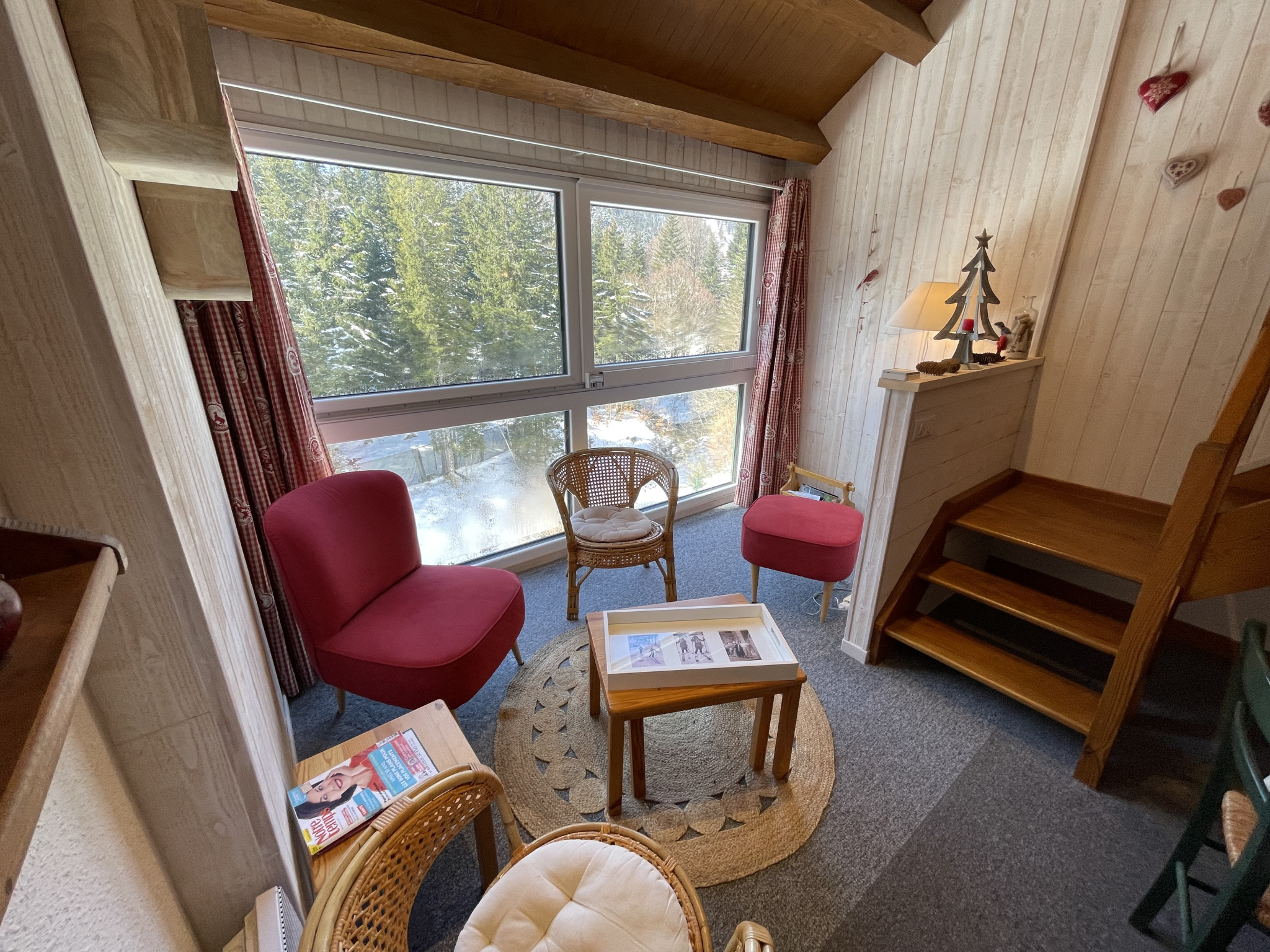 Dans petite copropriété, magnifique duplex de 42 m2 offrant une vue agréable sur la forêt et la rivière. Cet appartement se compose d'une entrée cabine desservant la salle de bains et les wc. D'une pièce de vie très agréable, avec coin nuit semi fermé et d'une mezzanine. L'appartement est vendu meublé. Il dispose d'une grande réserve et d'un casier à skis.