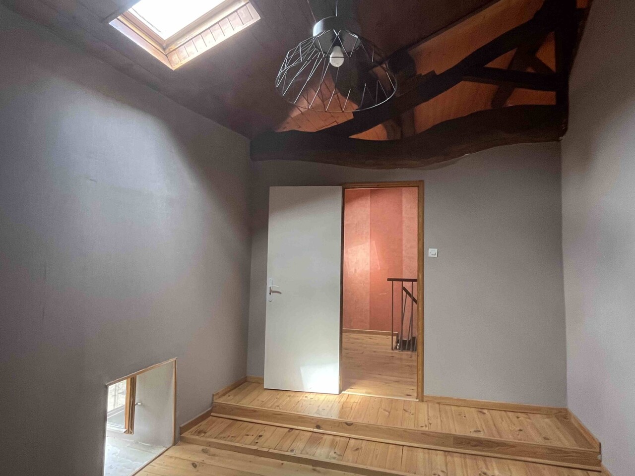 A VENDRE, maison mitoyenne en pierre dans hameau de village de 69 m² habitables sur deux niveaux avec droit à la cour indivis de 338 m². Le logement comprend au rez-de-chaussée : pièce de vie avec cuisine aménagée ouverte, dégagement/bureau, salle d'eau avec toilettes. A l'étage : mezzanine desservant deux chambres avec velux. La maison est équipée d'un chauffage central au gaz de ville avec chaudière à condensation, huisseries PVC en double vitrage et isolation des murs et toiture du premier étage. La toiture a été revue et démoussée récemment, l'assainissement est de type tout à l'égout. Pas de garage ni dépendance pour cette agréable maison de village située dans un quartier calme d'UCHIZY avec quelques commerces et écoles à 9 km au Sud de Tournus.