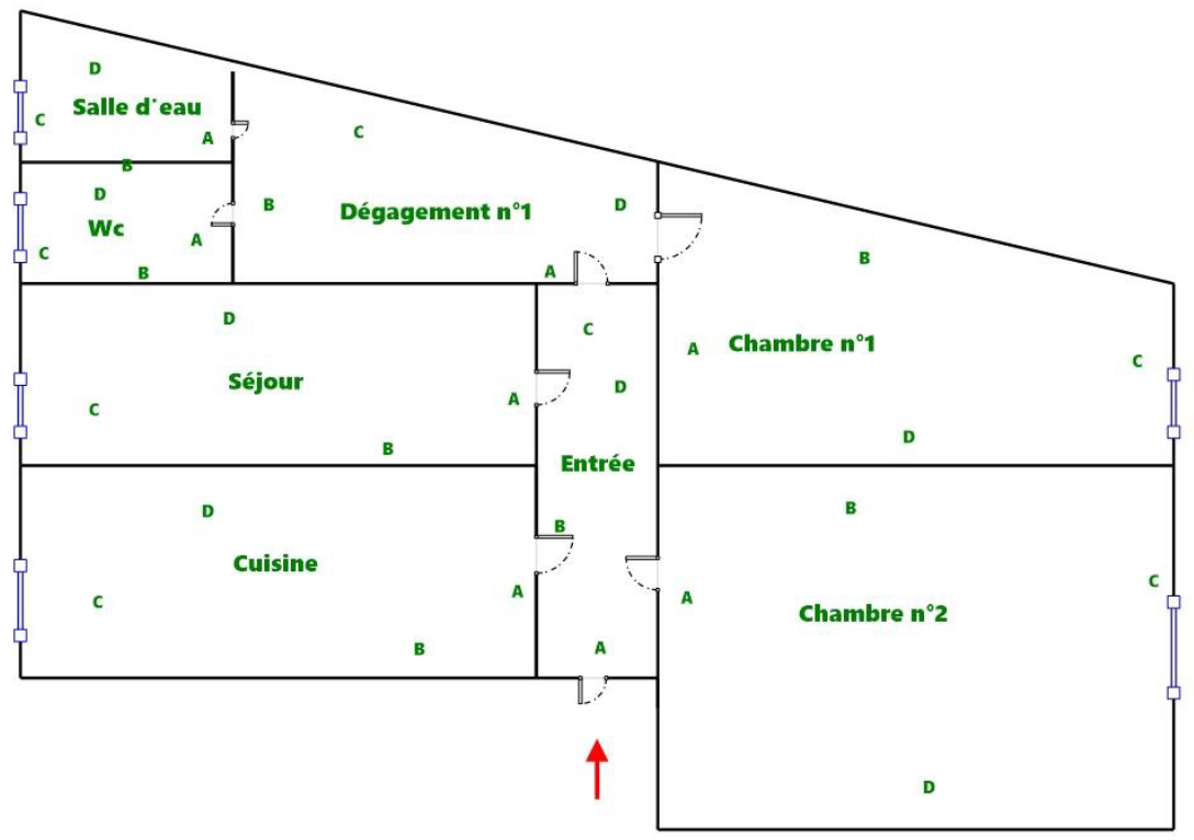 Il se compose de 2 séjours, une cuisine, une chambre, une salle d'eau avec WC et une cave en sous-sol.
