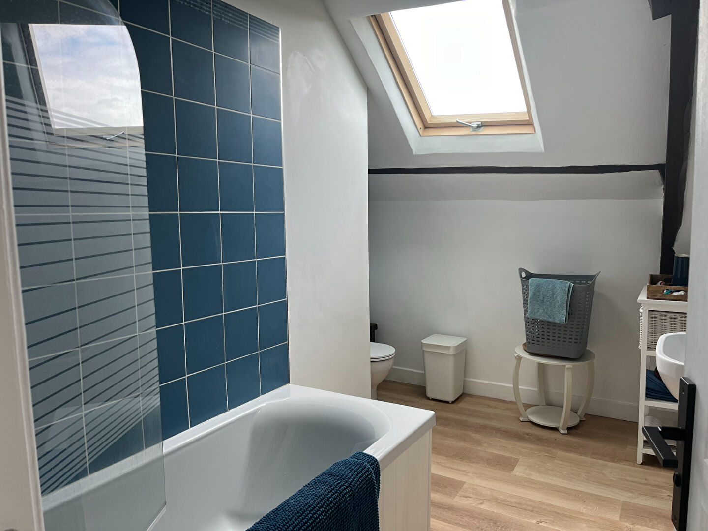 A l'étage 2 secondes chambres et salle de bains avec toilettes.