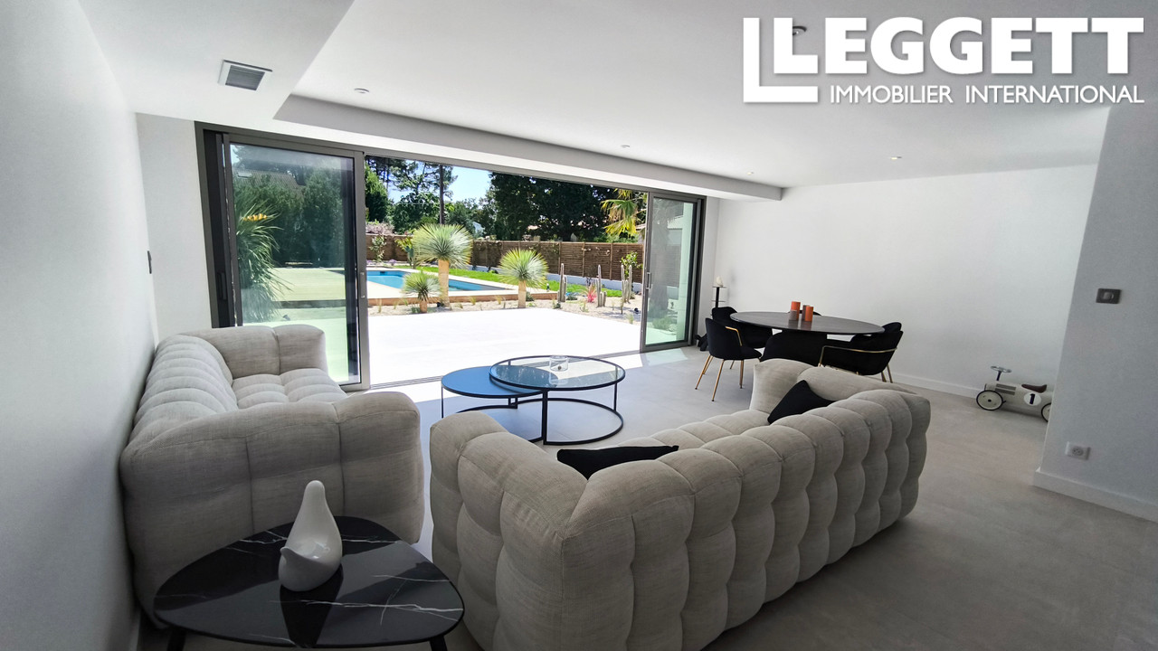 A31067EPR33 - Découvrez cette villa d'architecte de style californien, entièrement rénovée avec une annexe et une piscine avec des prestations haut de gamme avec une superficie de 205m²cette somptueuse maison située à Gujan-Mestras, une ville prisée du Bassin d'Arcachon. Proposée au prix de 1 788 000€;