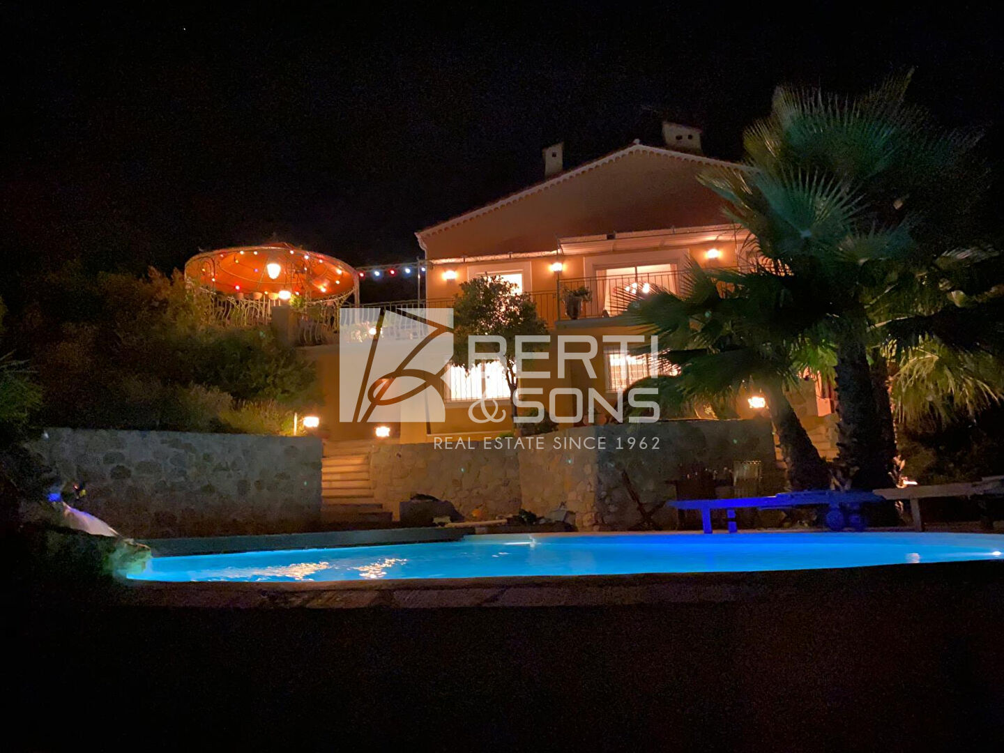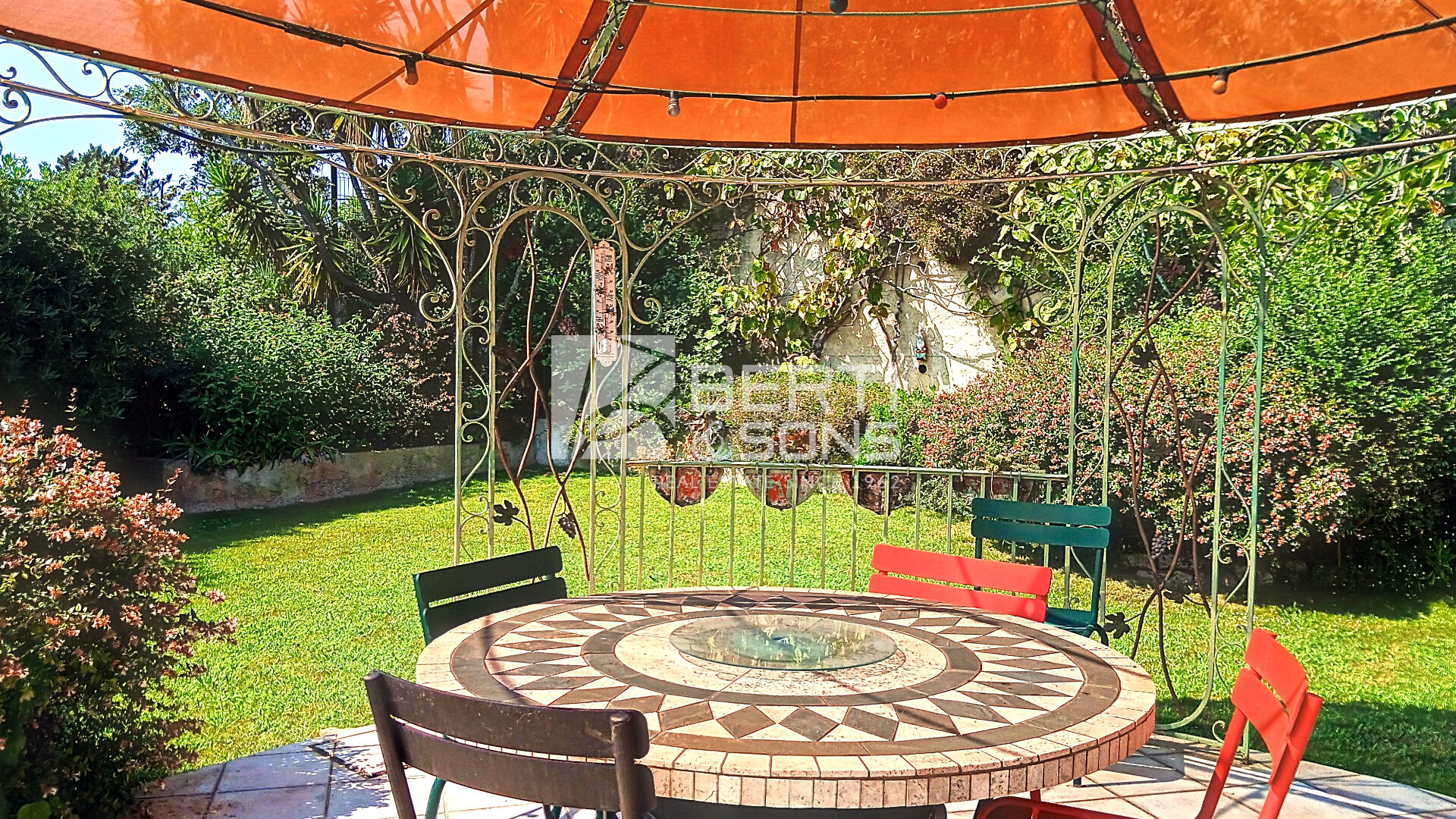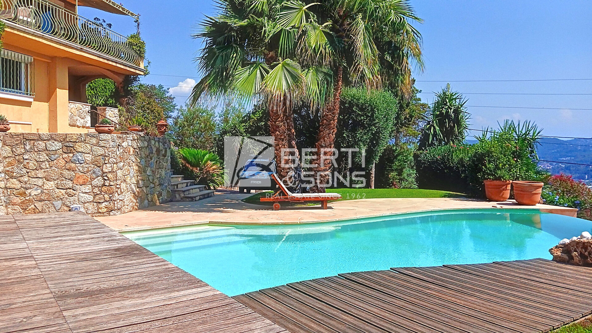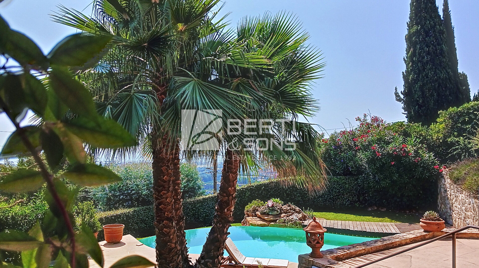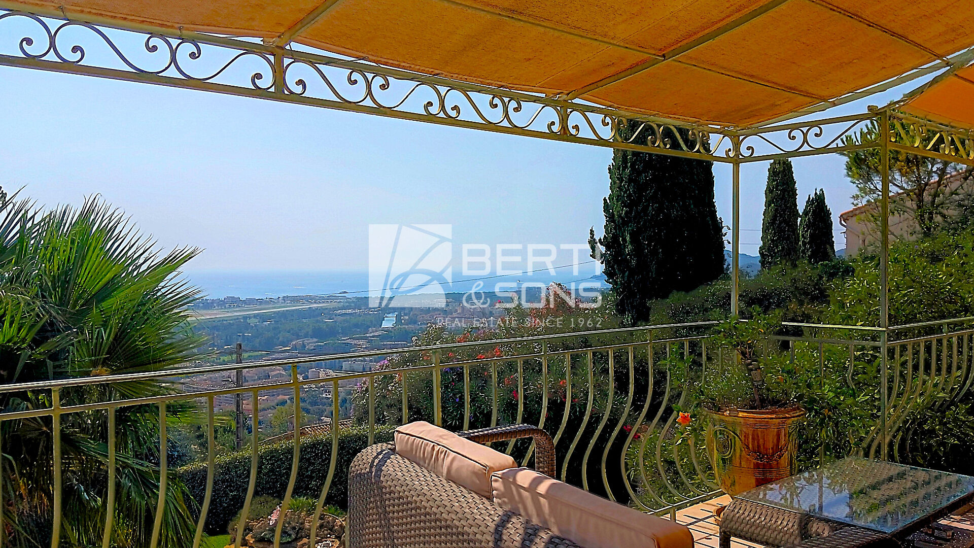 MANDELIEU HAUTEURS, le Groupe familial BERTI , Sons vous présente à la vente cette jolie villa individuelle nichée dans la verdure, offrant une vue panoramique sur la mer et les Iles de Lérins.